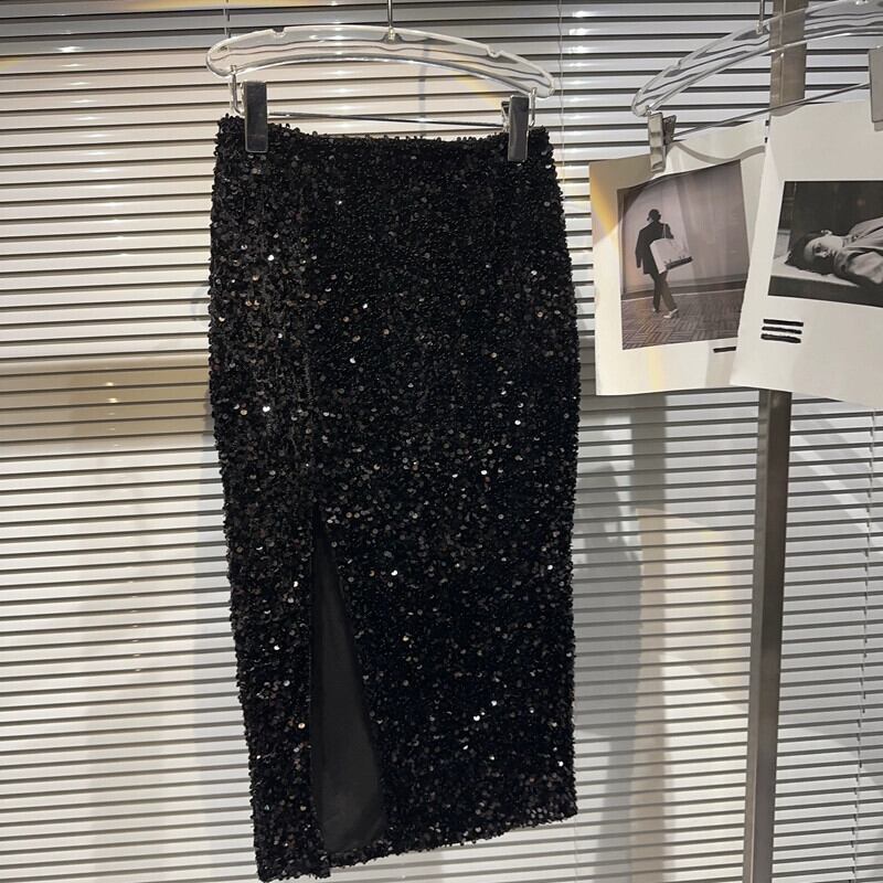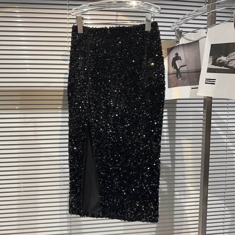 インターネット有名人の同じスタイル 2024 春の新作ヨーロッパとアメリカの風水重工業フルボディスパンコールハイスリット弾性ウエストスカートヒップカバースカート エラスティック 伸縮 スプリング 春物 ヨーロピアン gyan3362117597753 | vestitialla