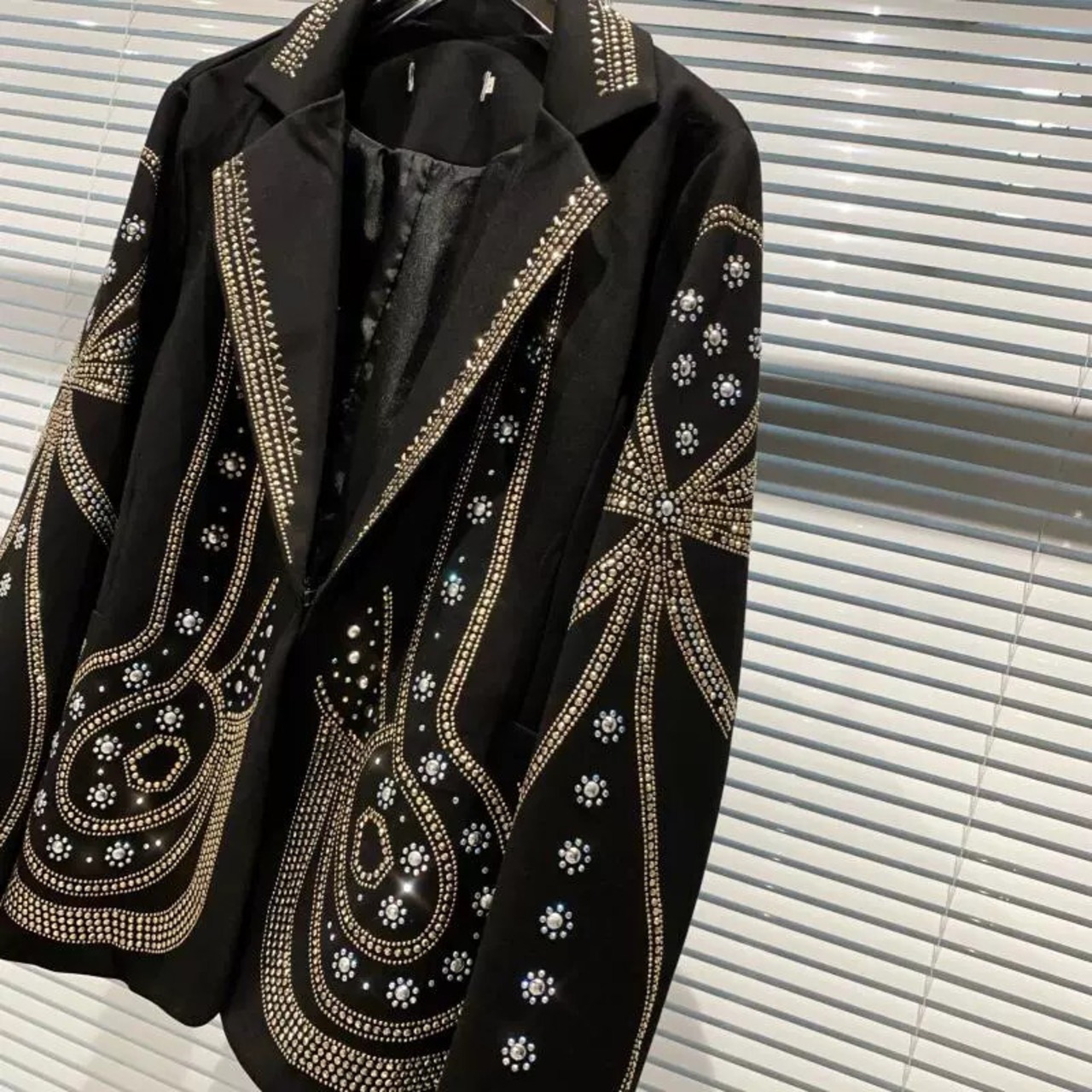 インターネット有名人同様の2024春の新スタイル金色のリベット、ラインストーン、ダイヤモンド、光沢のあるデザイン、スリムジャケット、スーツ スプリング 春物 gyan3316133948526 | vestitialla