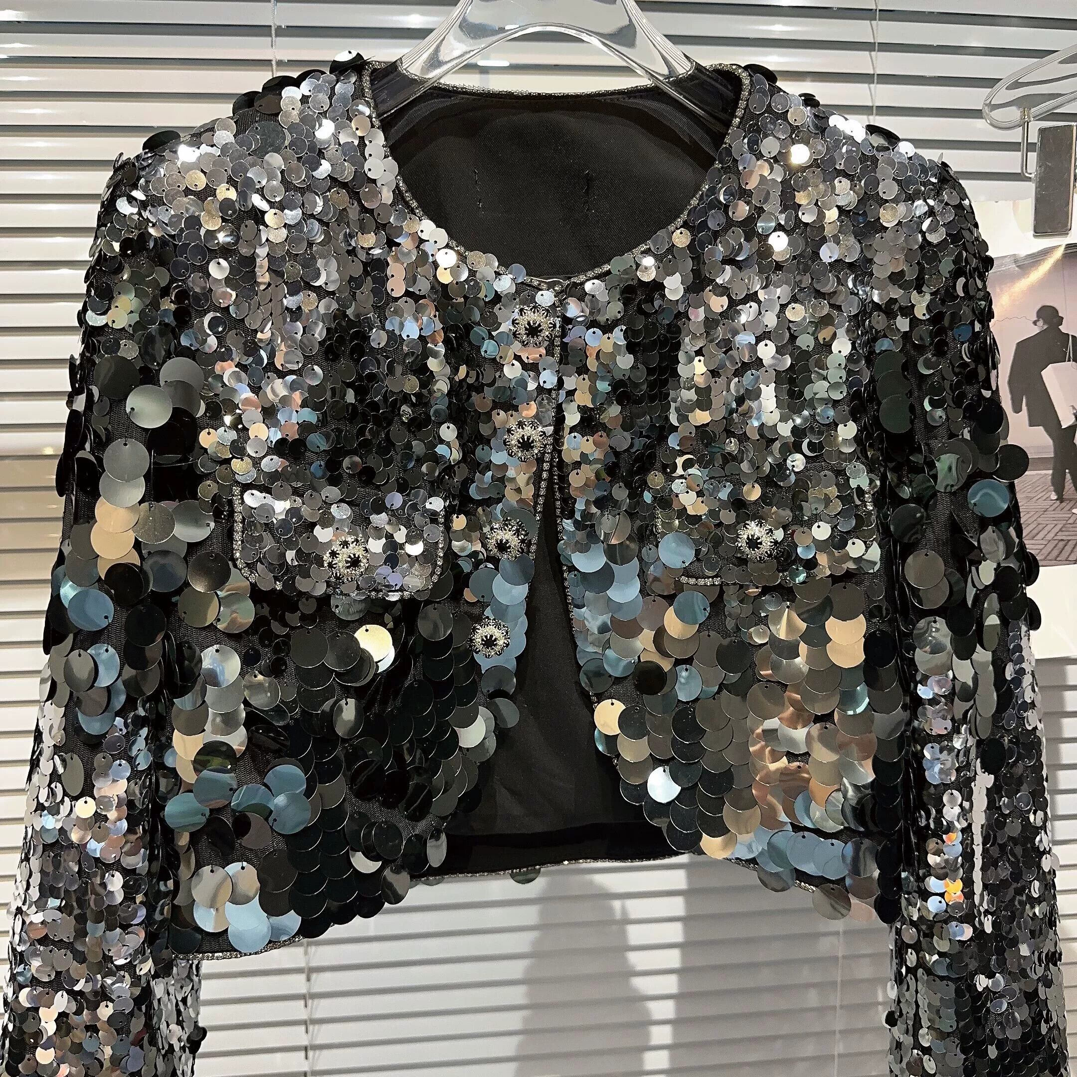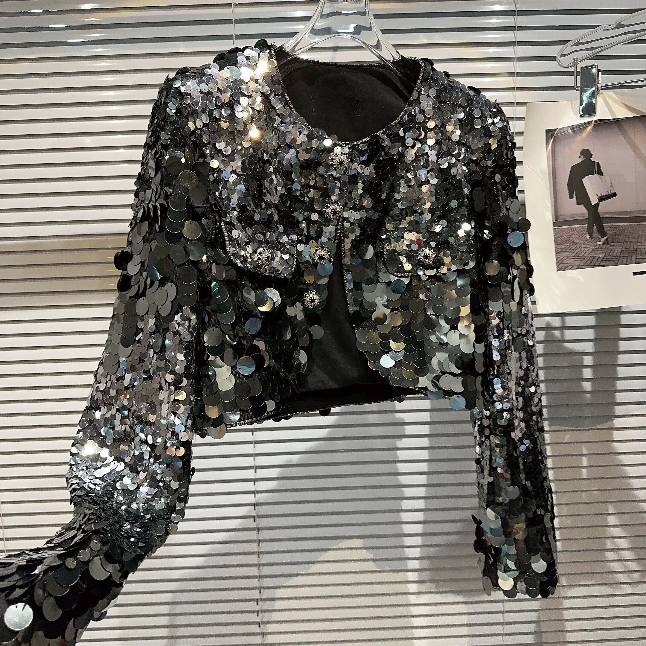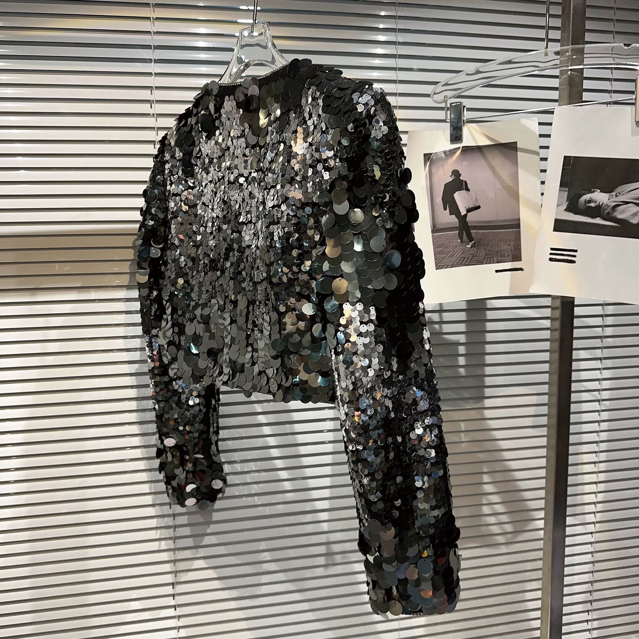 ネットセレブと同じスタイル 2024 春の新作ストリートセレブグラデーションラージスパンコールダイヤモンドバックル重工業ショルダーパッドトップショートジャケット スプリング 春物 gyan3311154049500 | vestitialla