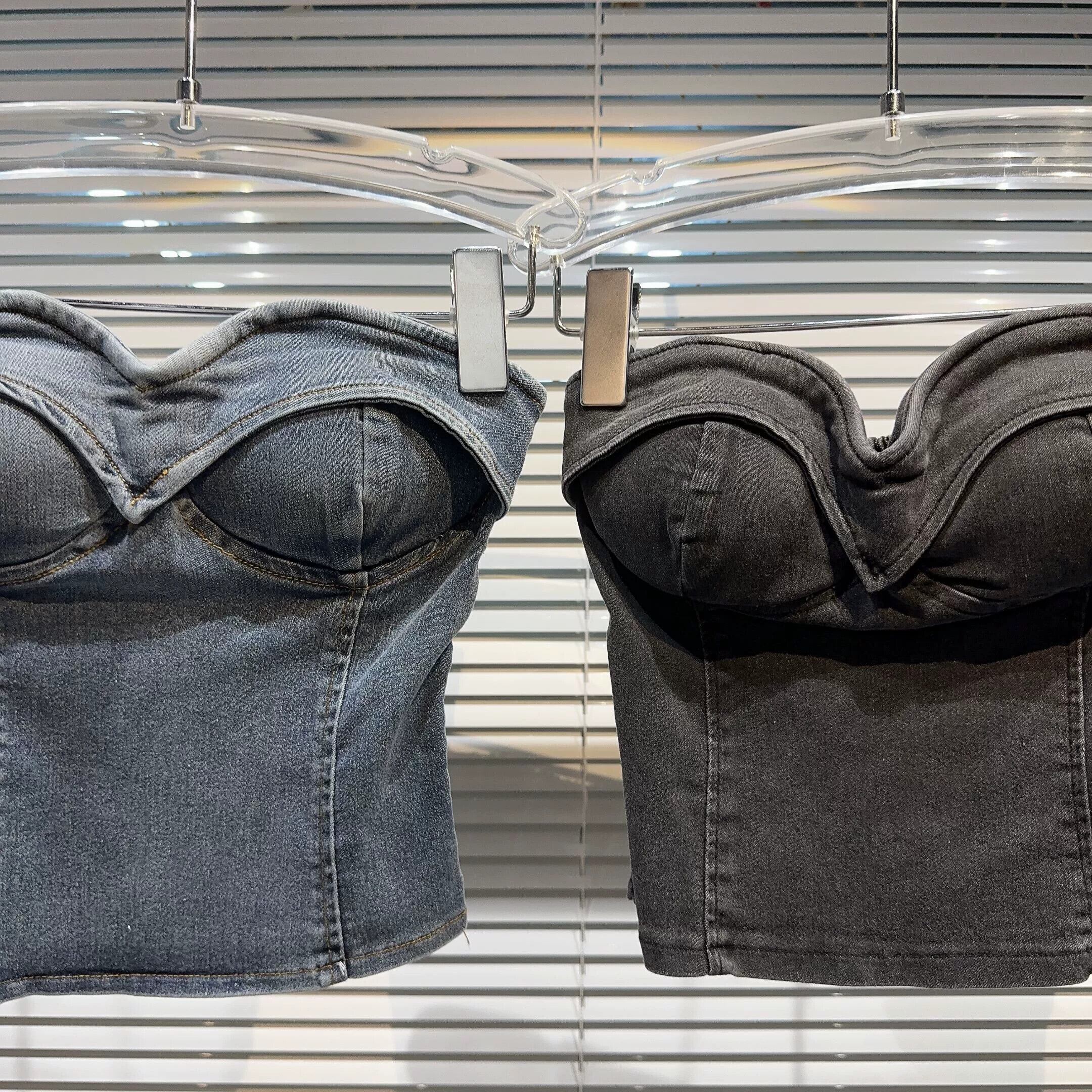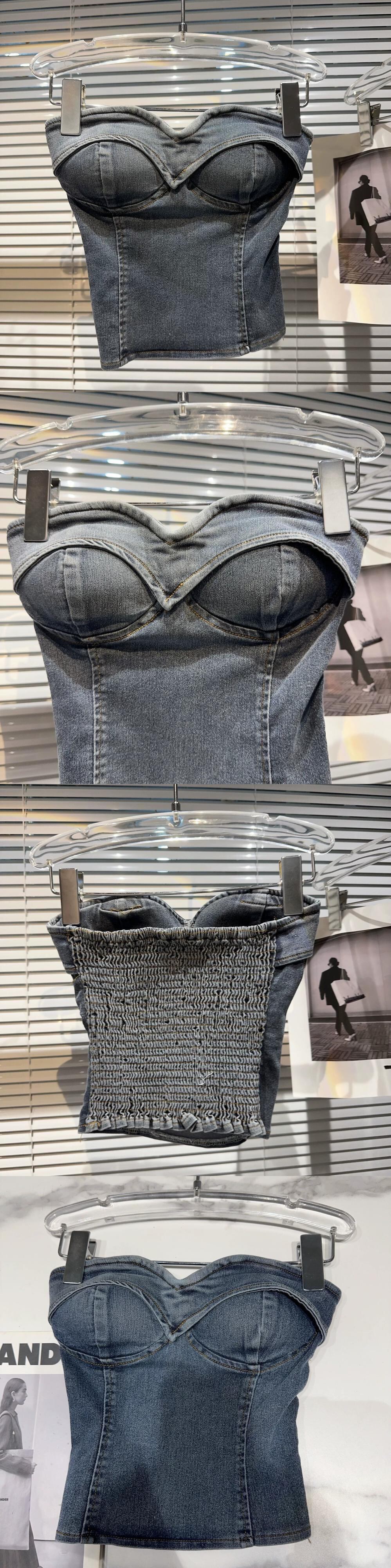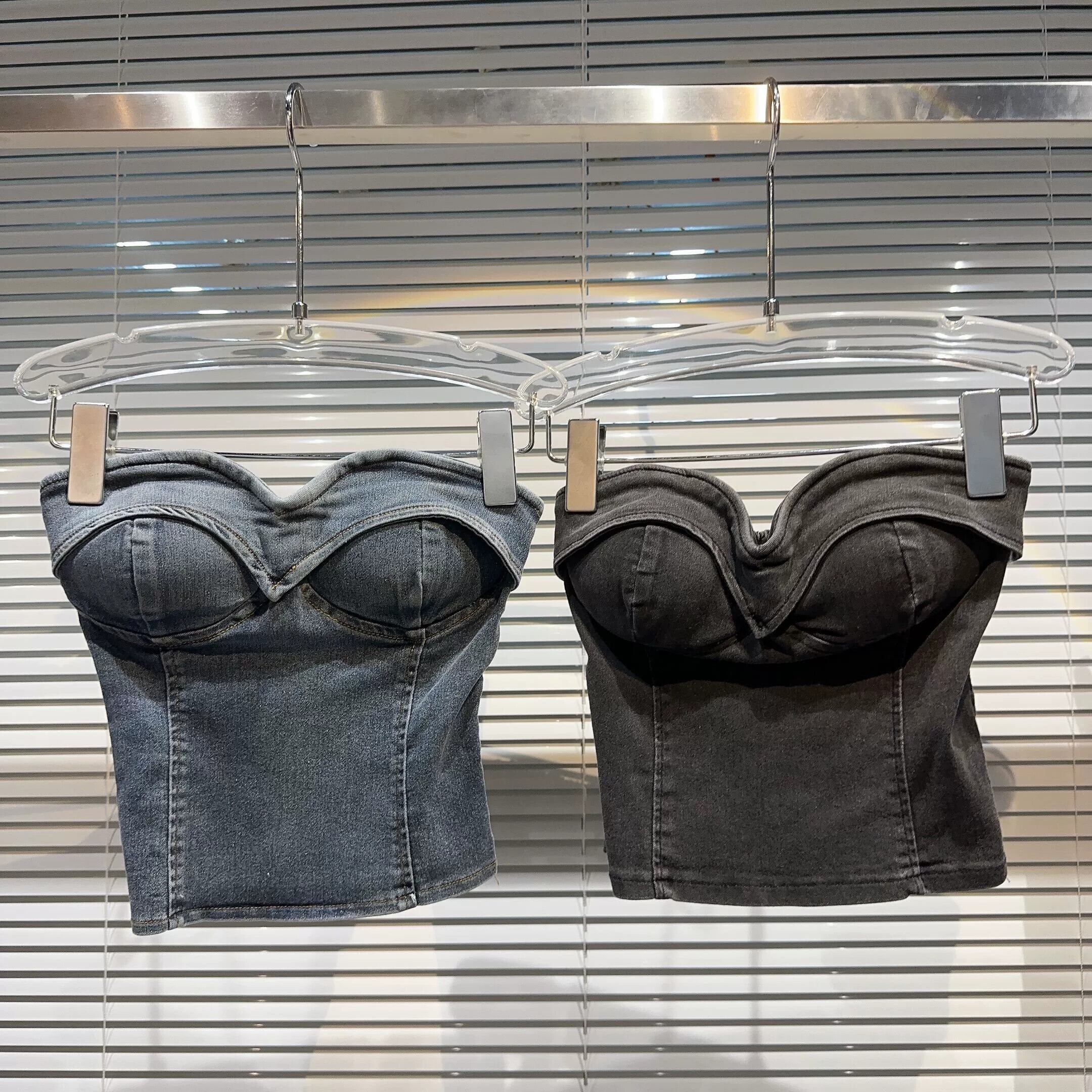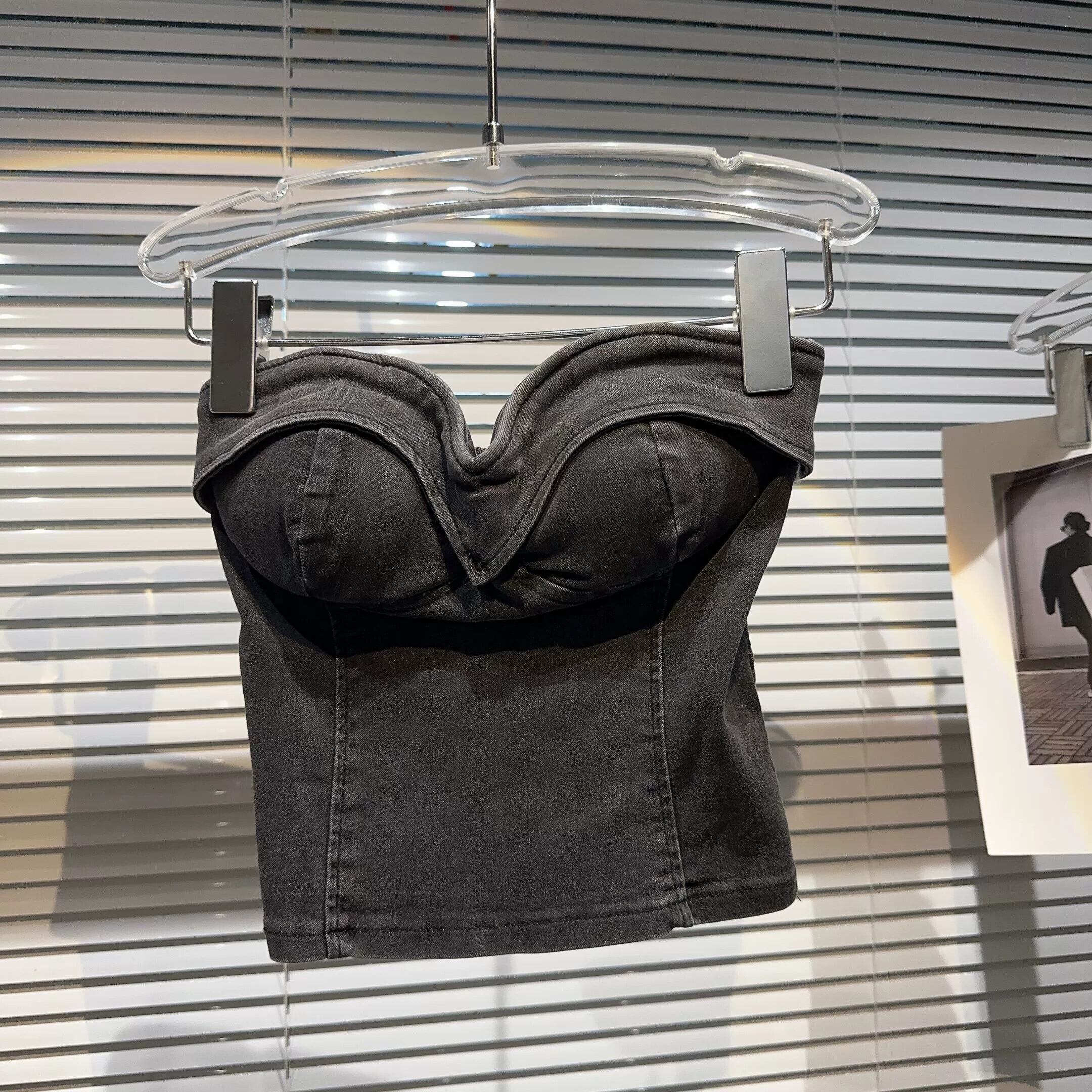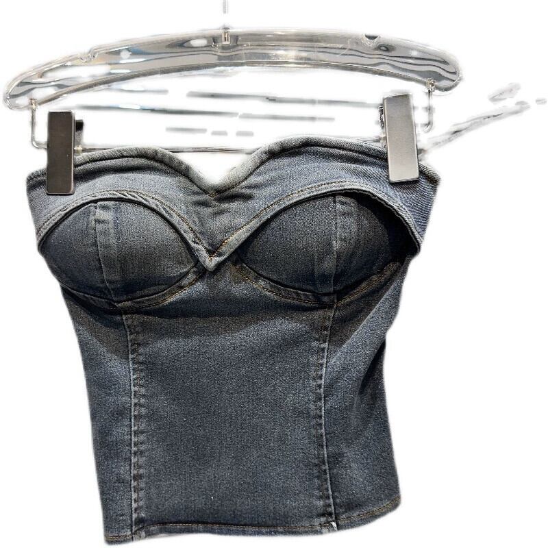 インターネットセレブと同じスタイル 2024 春の新セクシーセレブ洗えるスポンジ胸パッドスリムデニムチューブトップベスト スプリング 春物 gyan3351208750888 | vestitialla