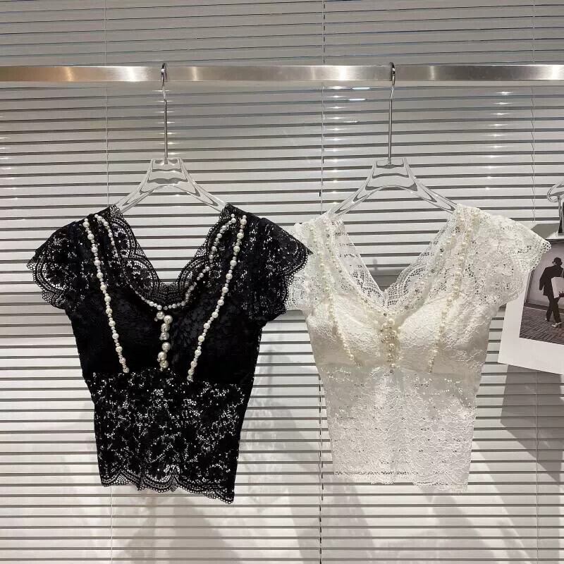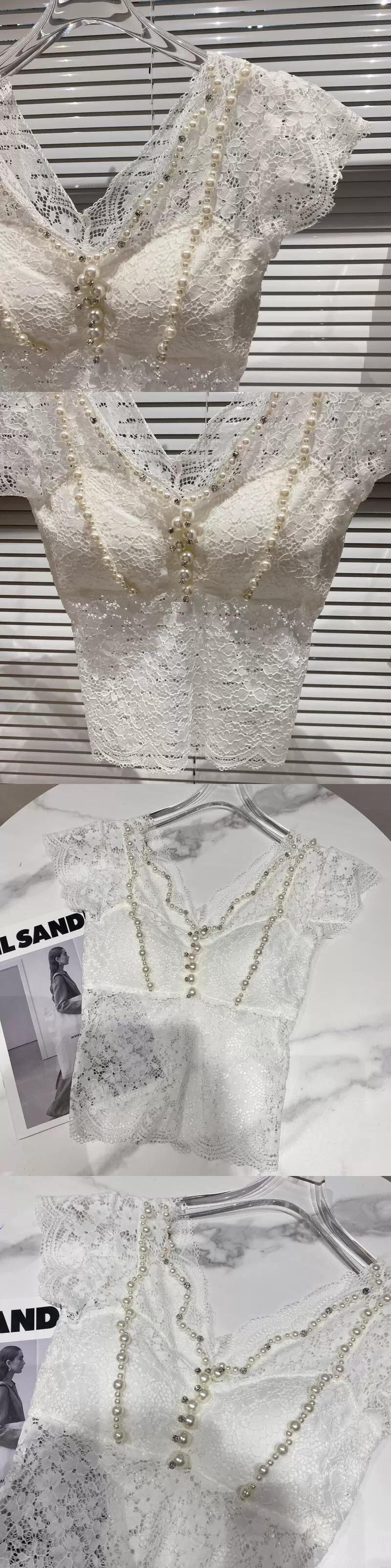 ネット有名人の同じスタイル 2024 春の新作手作りパールネイルダイヤモンドレースデザインセクシーなスリム胸パッド入りベストサスペンダー スプリング 春物 真珠 gyan3364444195561 | vestitialla