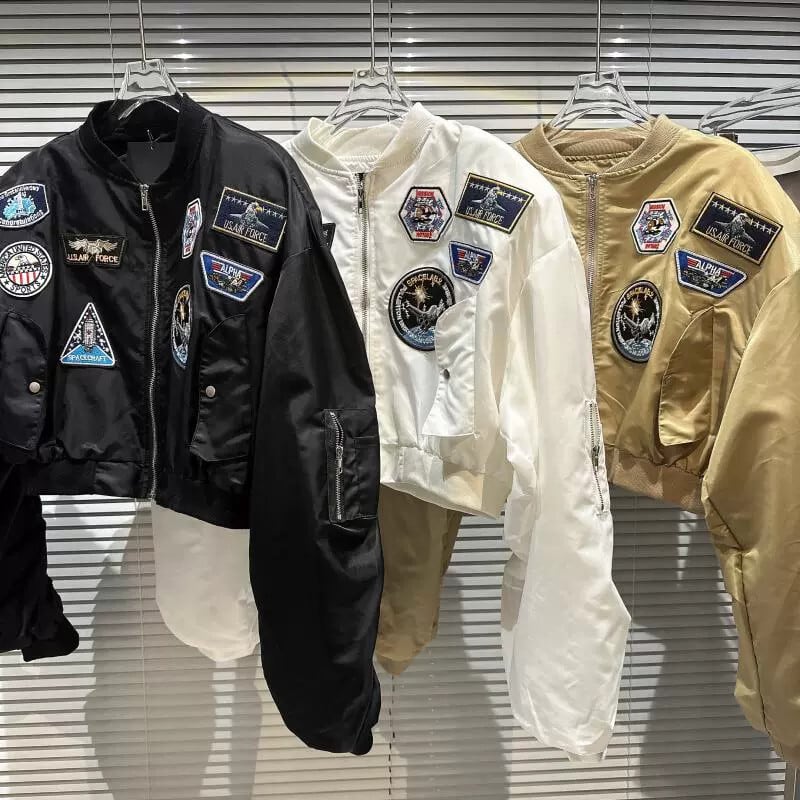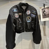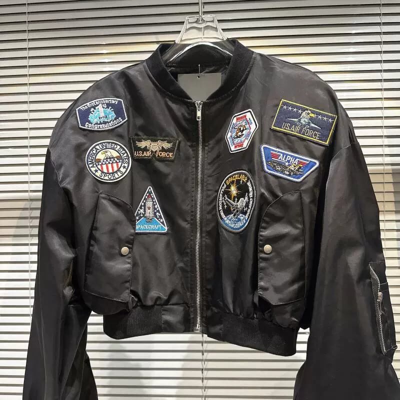 ネットセレブ同風2024春新作ストリートスタイルバッジパッチ肩パッドデザインスタンドカラーフライトジャケットショートコート スプリング 春物 gyan3332501672331 | vestitialla