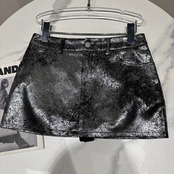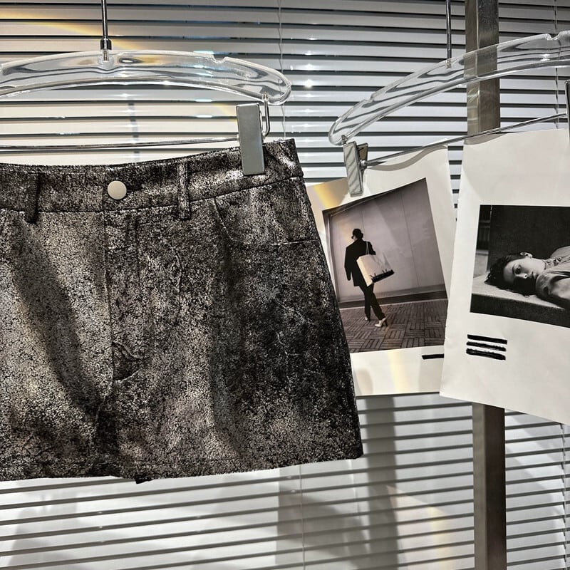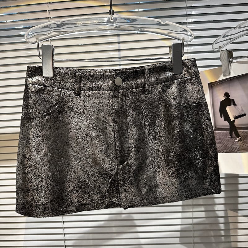 インターネットセレブと同じスタイル 2024 春の新ニッチレトロシルバーメタリックひび割れネクタイ PU レザーショートスカートヒップスカート女性 スプリング 春物 銀 gyan3373821197914 | vestitialla