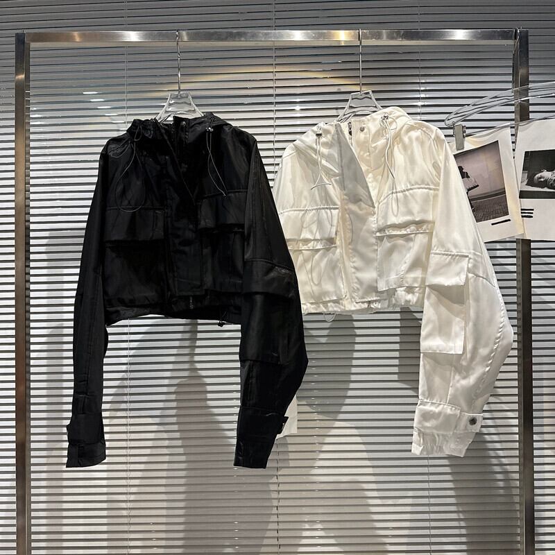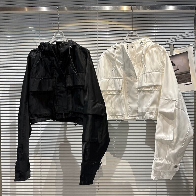 ネットセレブ同様2024春新作ストリートスタイル大きなポケットデザイン巾着フード付き日焼け止めワークジャケットショートコート スプリング 春物 gyan3339626528387 | vestitialla