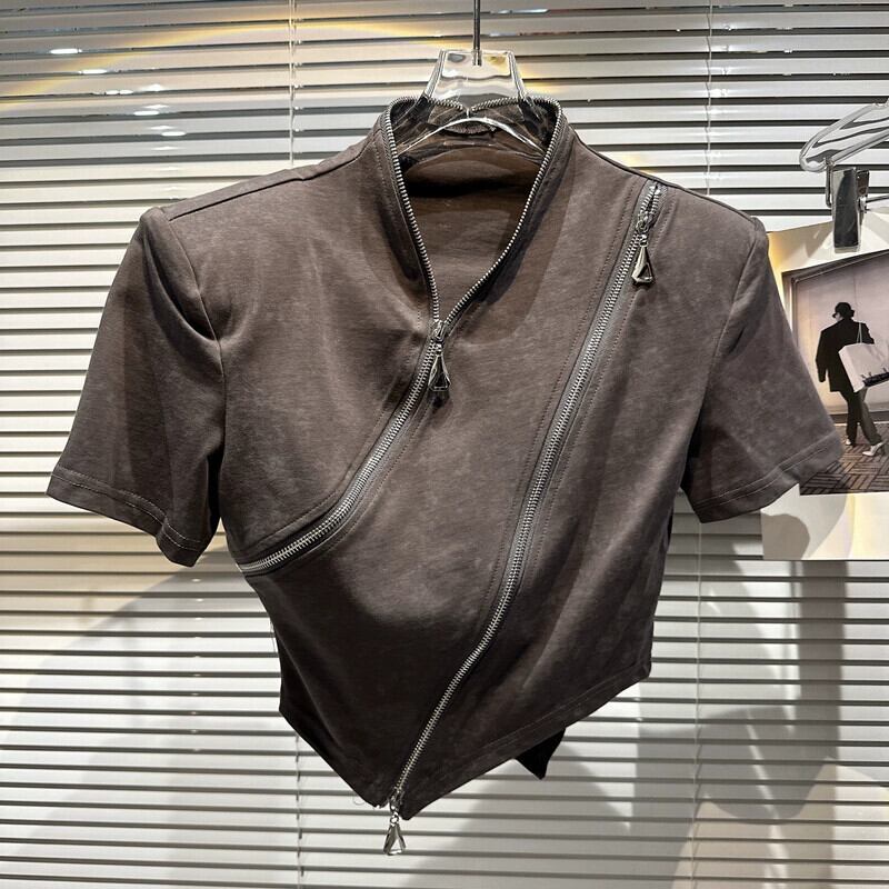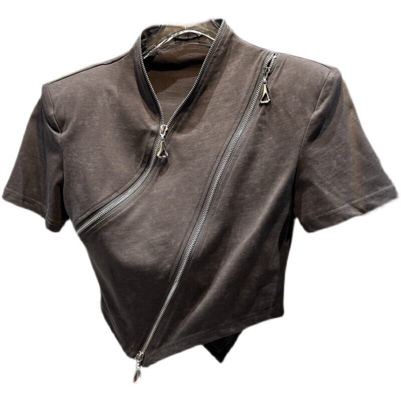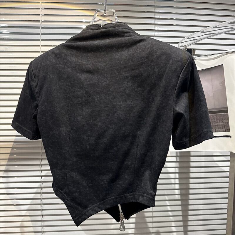 インターネットセレブと同じスタイル 2024 春の新ニッチスタイル斜めジッパーデザインパンクバイクショート半袖 Tシャツ女性 スプリング 春物 gyan3377860008821 | vestitialla