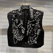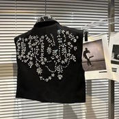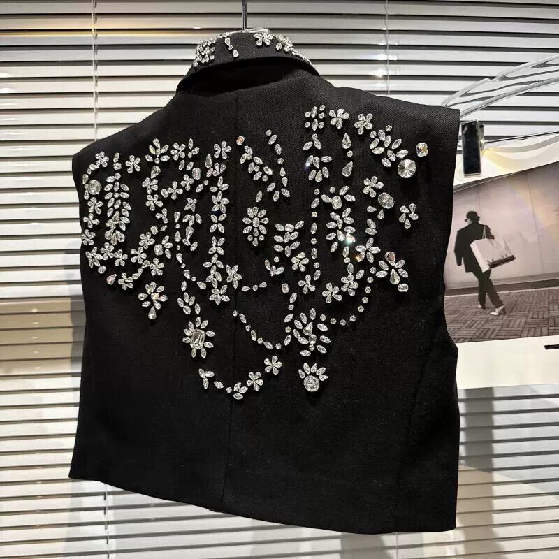 ネット有名人の同じスタイル 2024 春の新高精細高耐久ハンドビーズラインストーンフラワーショルダーパッドスーツベストベスト スプリング 春物 フラワーデザイン gyan3329277927192 | vestitialla