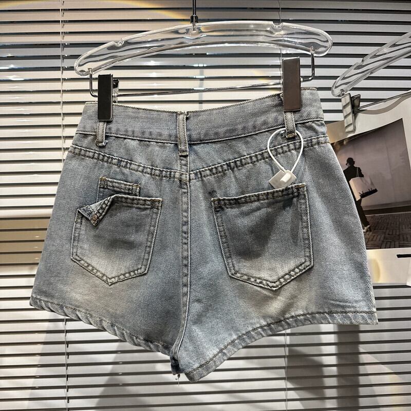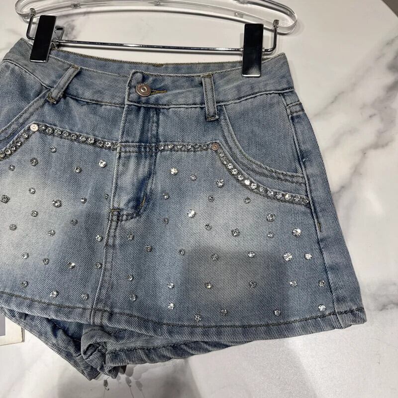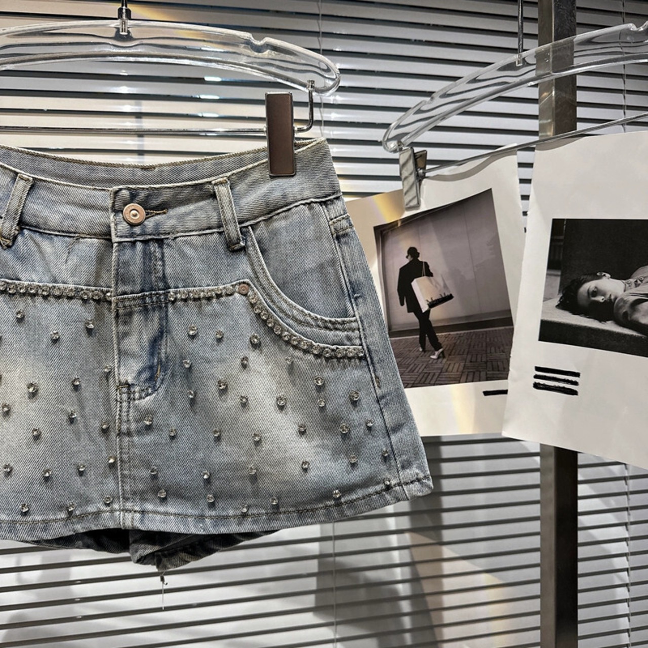 インターネット有名人の同じスタイル 2024 春の新ニッチラインストーンビーズ露出防止下着デザインウォッシュデニムショートスカート女性 スプリング 春物 gyan3319213339773 | vestitialla