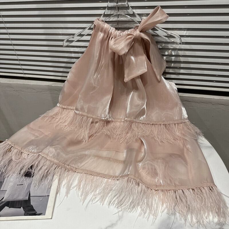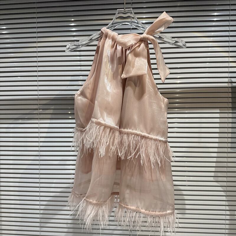 インターネット有名人の同じ2024春の新しいスタイルの小さな香りの良いタイネックの羽と毛皮のような気質の女性シフォンホルターネックベスト スプリング 春物 gyan3349390294402 | vestitialla