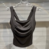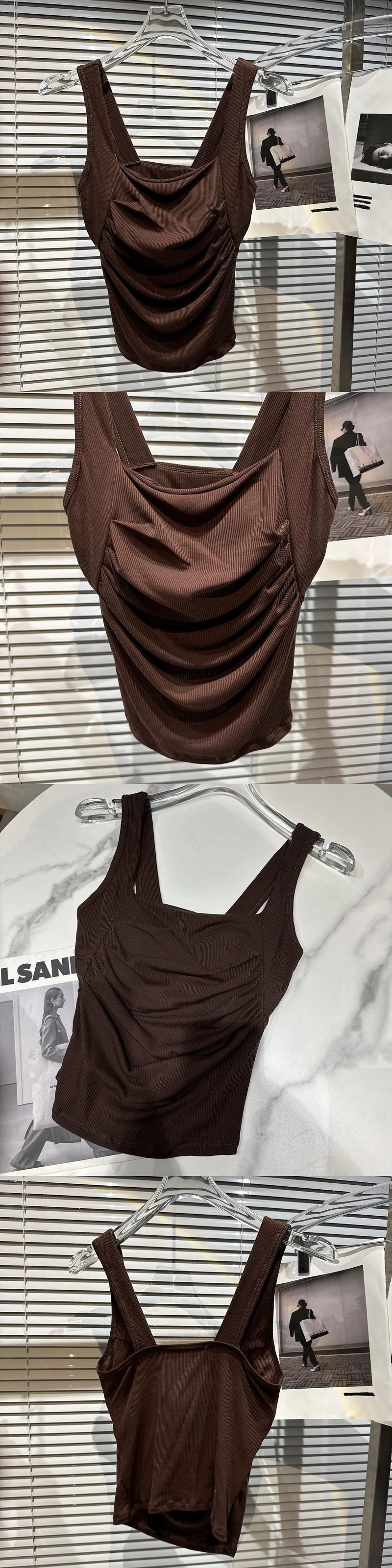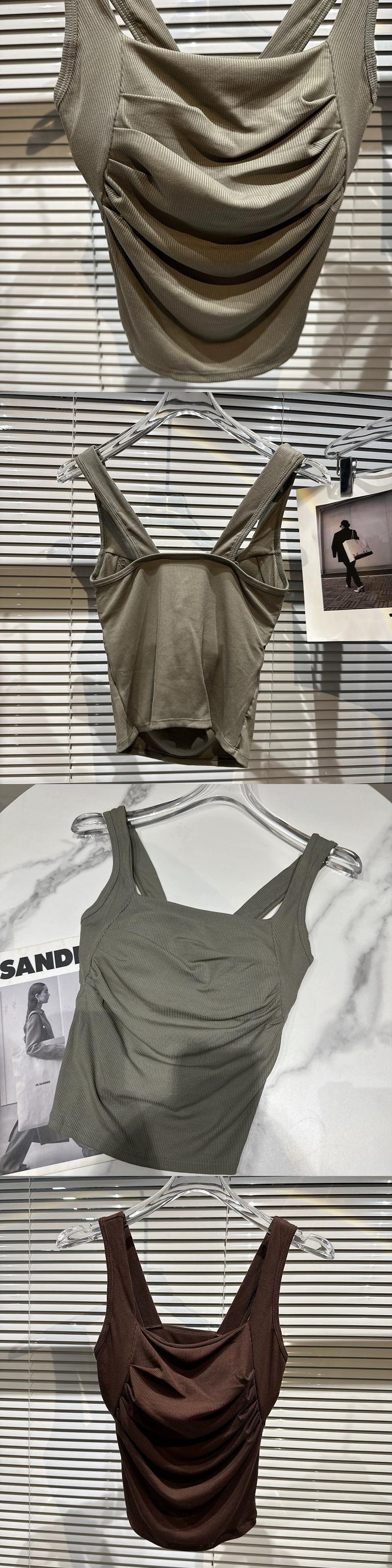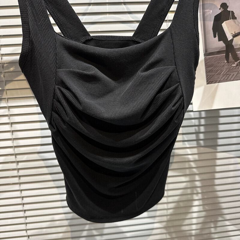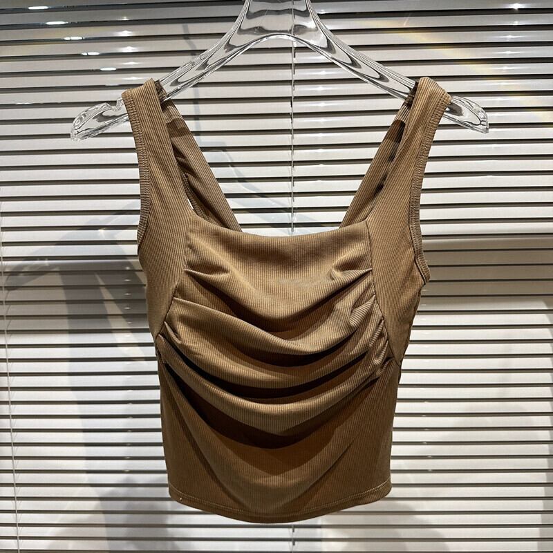 インターネットセレブと同じスタイル 2024 春の新しいニッチスタイルプリーツステッチ無地スリムフィット胸パッドキャミソール女性 スプリング 春物 ソリッドカラー gyan331708972233 | vestitialla