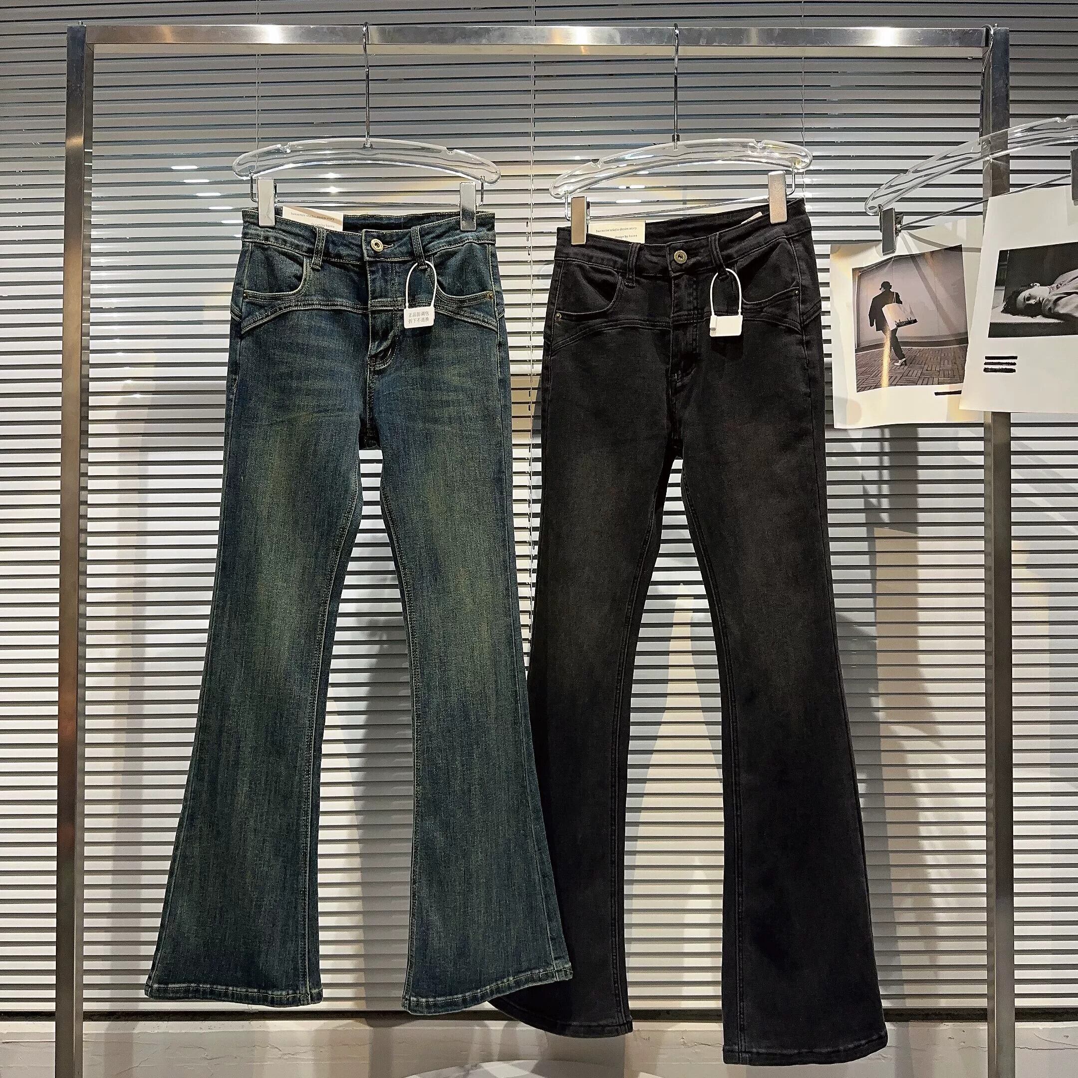 インターネット有名人の同じスタイル2024春の新レトロカラーネクタイスプライシング装飾ダメージ加工ウォッシュスリムフィットブーツカットジーンズ スプリング 春物 gyan3321612136130 | vestitialla
