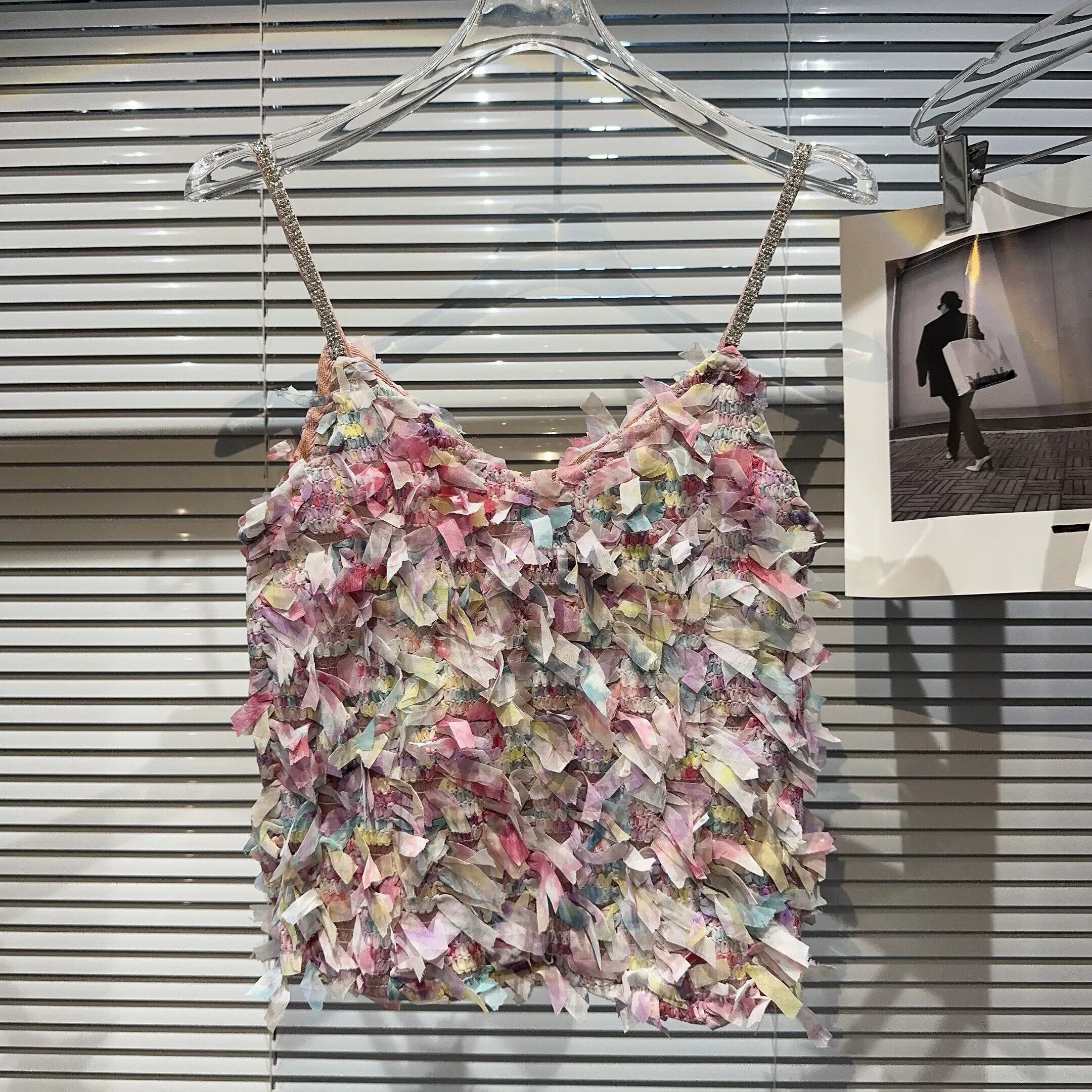 インターネットセレブと同じスタイル 2024 春の新スタイル小さな香りラインストーンショルダーストラップカラフルなテルストリップキャミソール女性 スプリング 春物 gyan3388990886434 | vestitialla