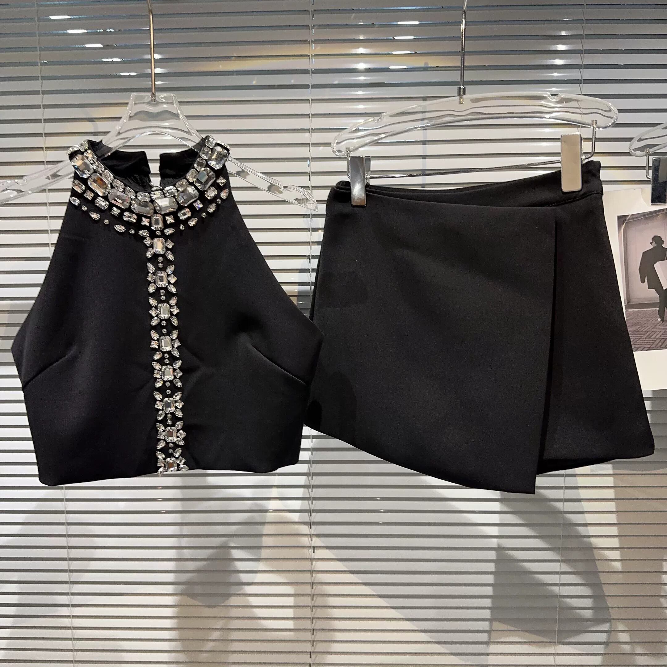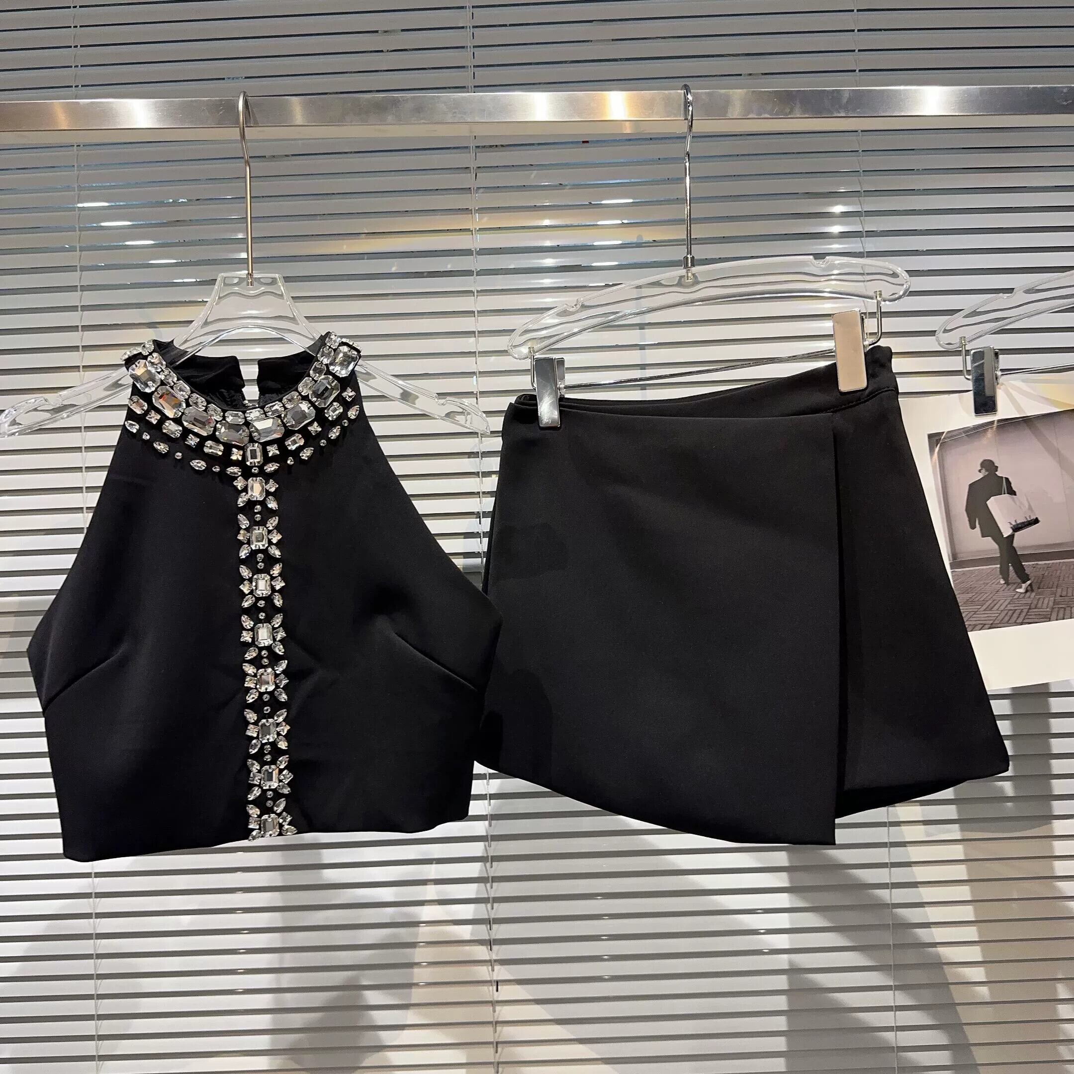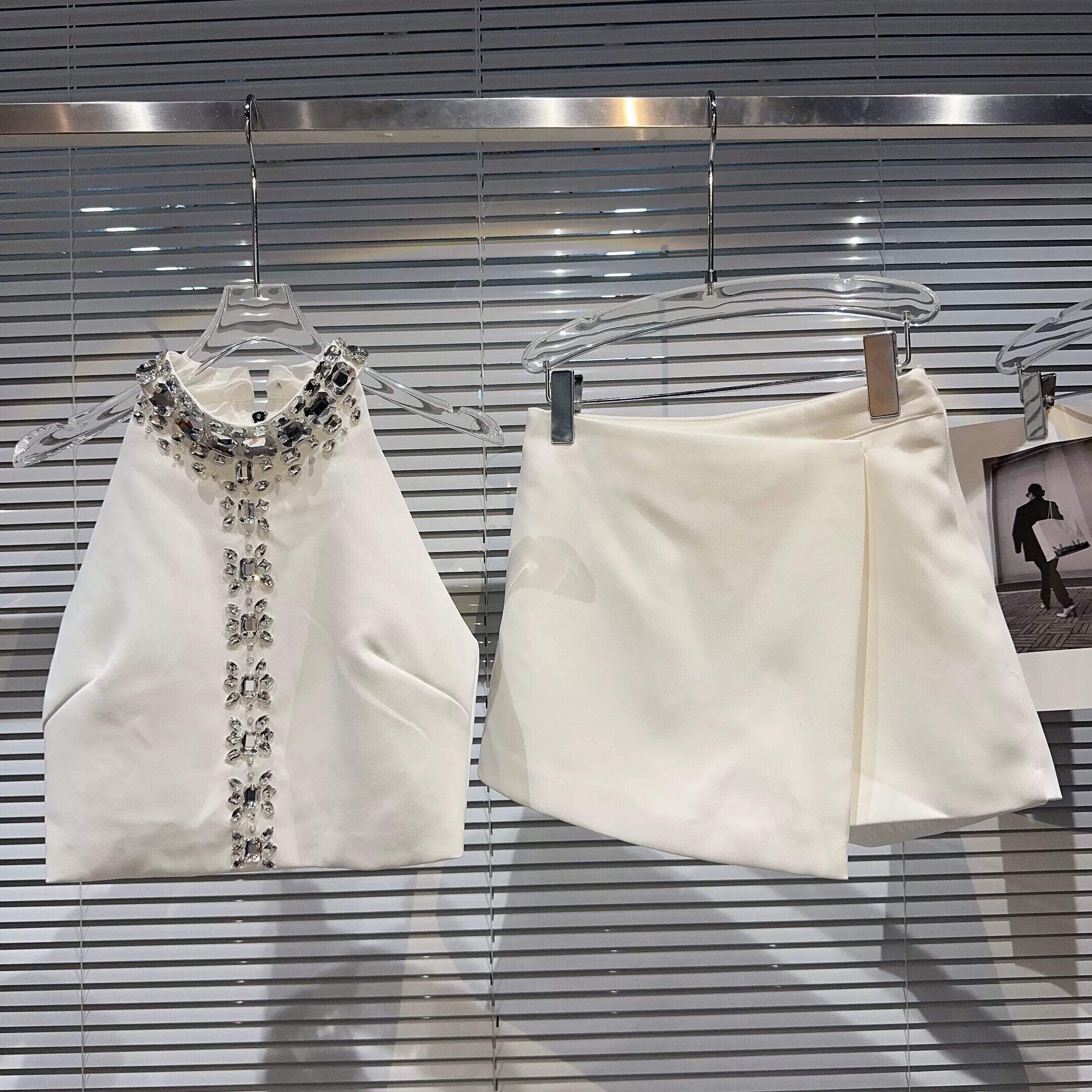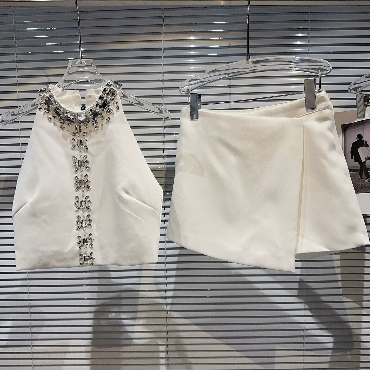 インターネット有名人の同じスタイル2024新しい夏のスタイル小さな香りのスタイルの宝石ビーズのベスト+ベベルエッジ折りたたみスカート社交界のスーツ サマー 夏物 gyan338735558561 | vestitialla