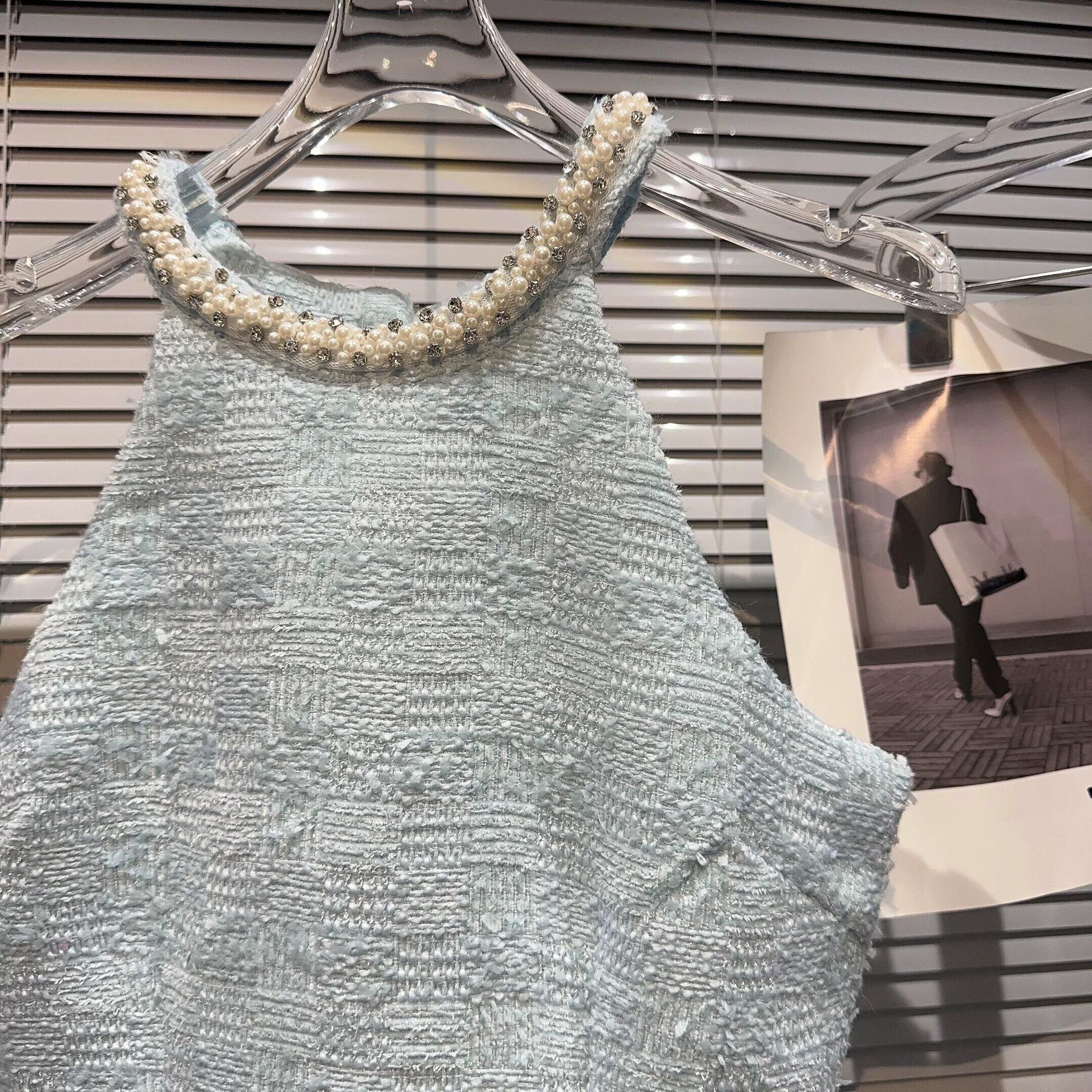 インターネット有名人の同じスタイル 2024 新しい夏のスタイル小さな香りのスタイルパールビーズ襟ツイードエレガントなレディドレスの女性 サマー 夏物 真珠 gyan339326082215 | vestitialla