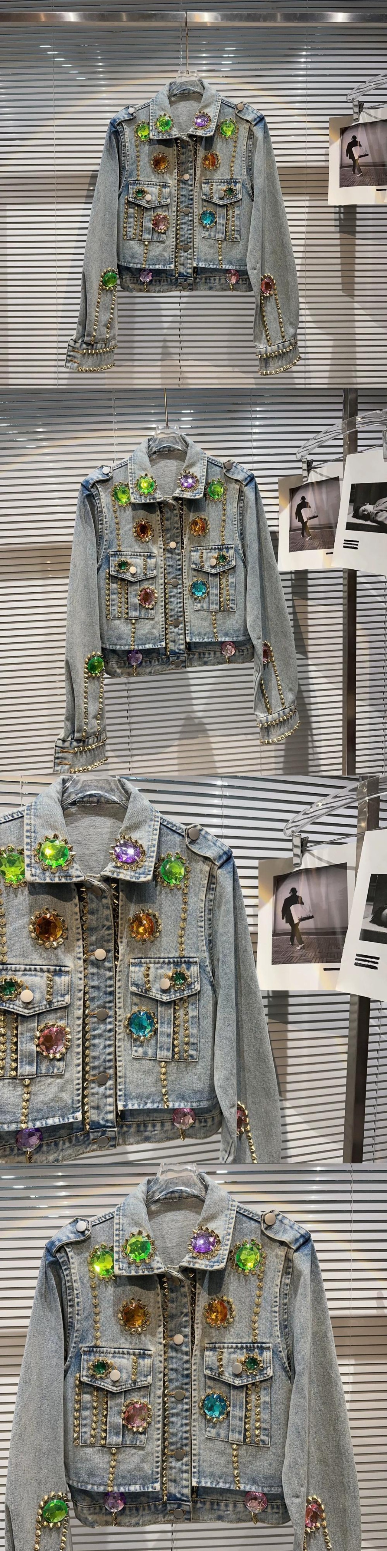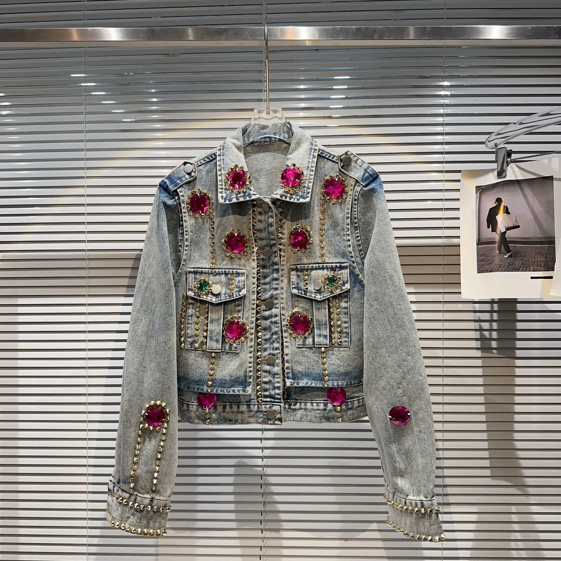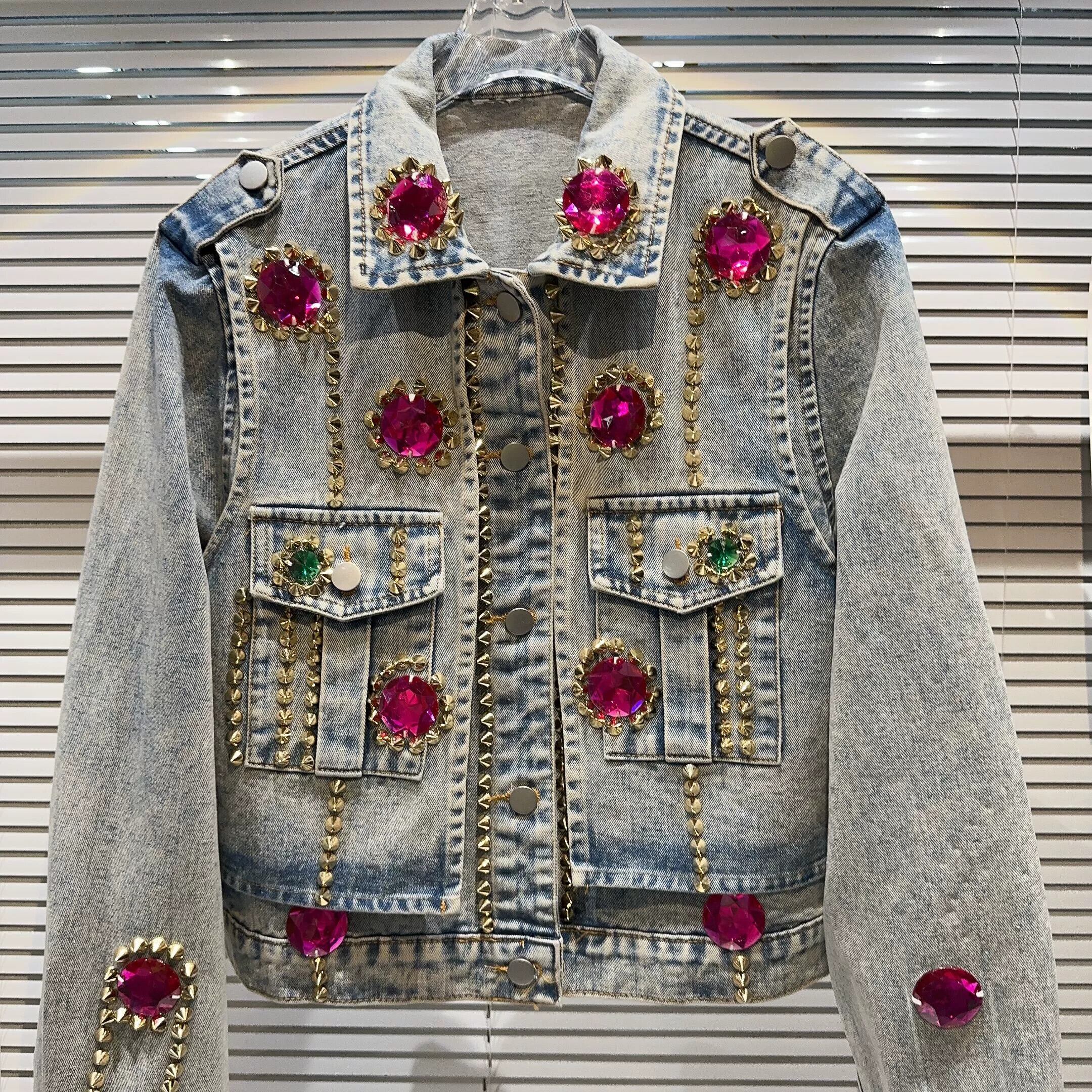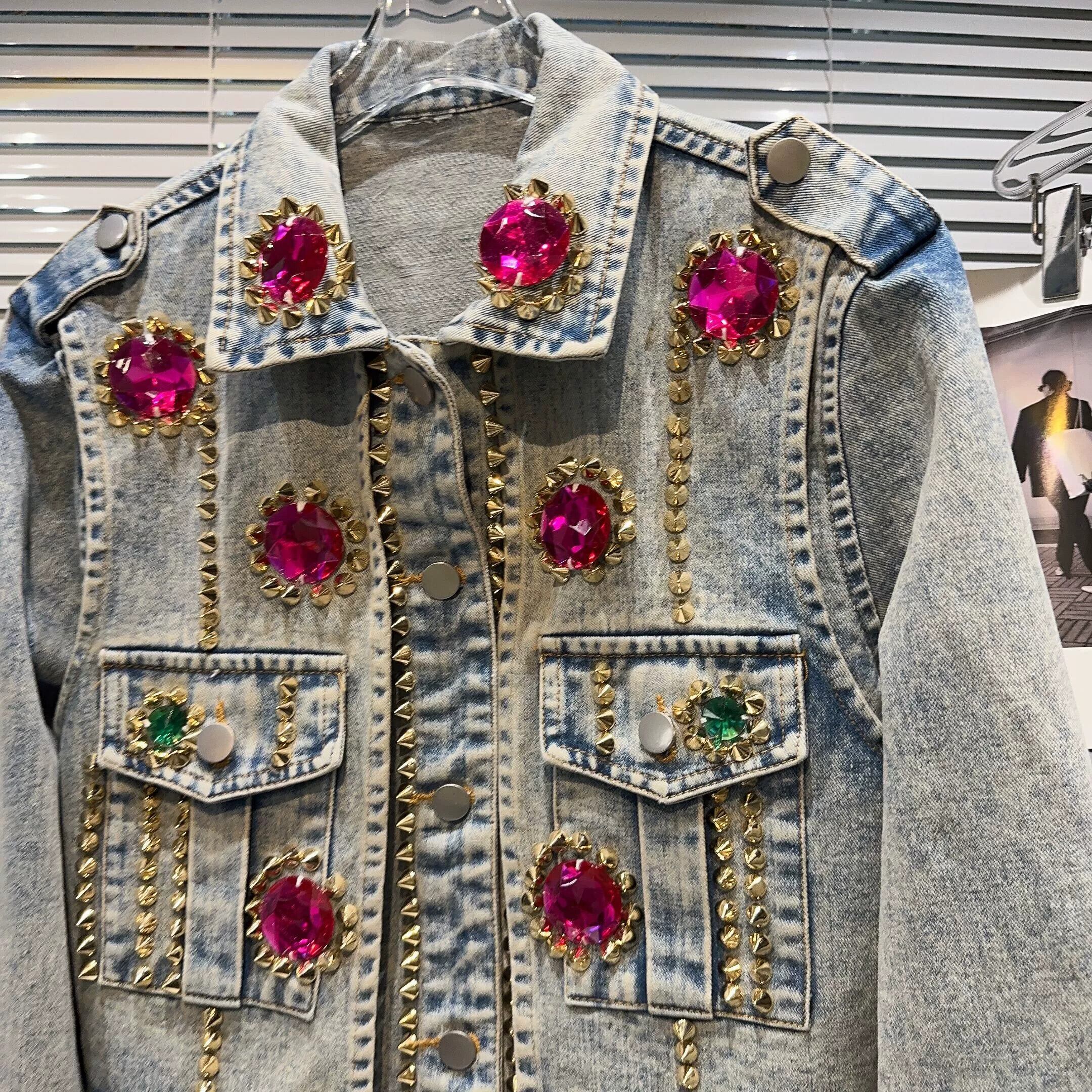 インターネットセレブと同じスタイル2024春の新スタイルヨーロッパとアメリカのストリートカラージェムストーンビーズリベット重工業デニムショートジャケットトレンディ レッド スプリング 春物 ヨーロピアン gyan3344698369259 | vestitialla
