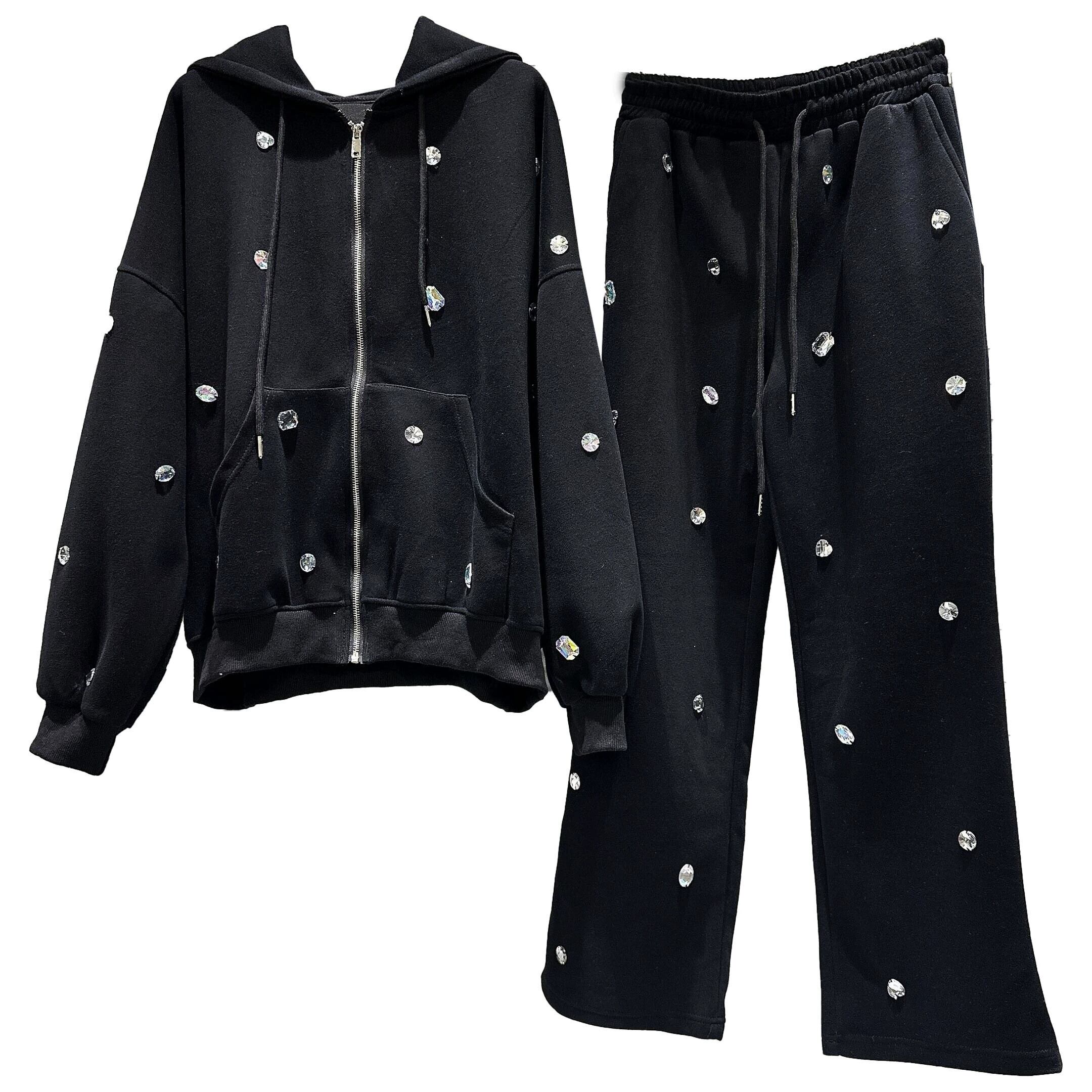 インターネットセレブの同じスタイル2024春の新作ニッチカジュアル大きなダイヤモンドビーズフード付きスウェットシャツジャケット+ロングパンツスーツ スプリング 春物 gyan3343460446996 | vestitialla