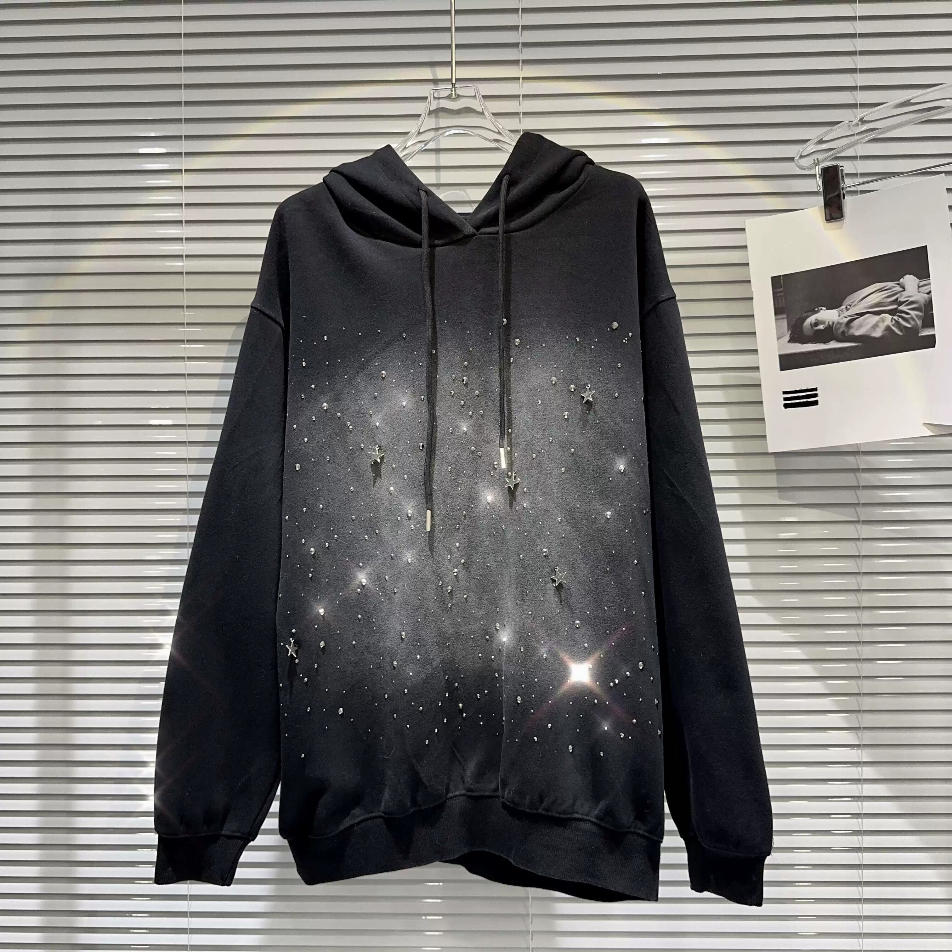インターネット有名人の同じスタイル2024春の新しいニッチモデル五芒星ペンダント星空ダイヤモンドフード付きスウェットシャツパーカー スプリング 春物 gyan3383959222950 | vestitialla