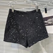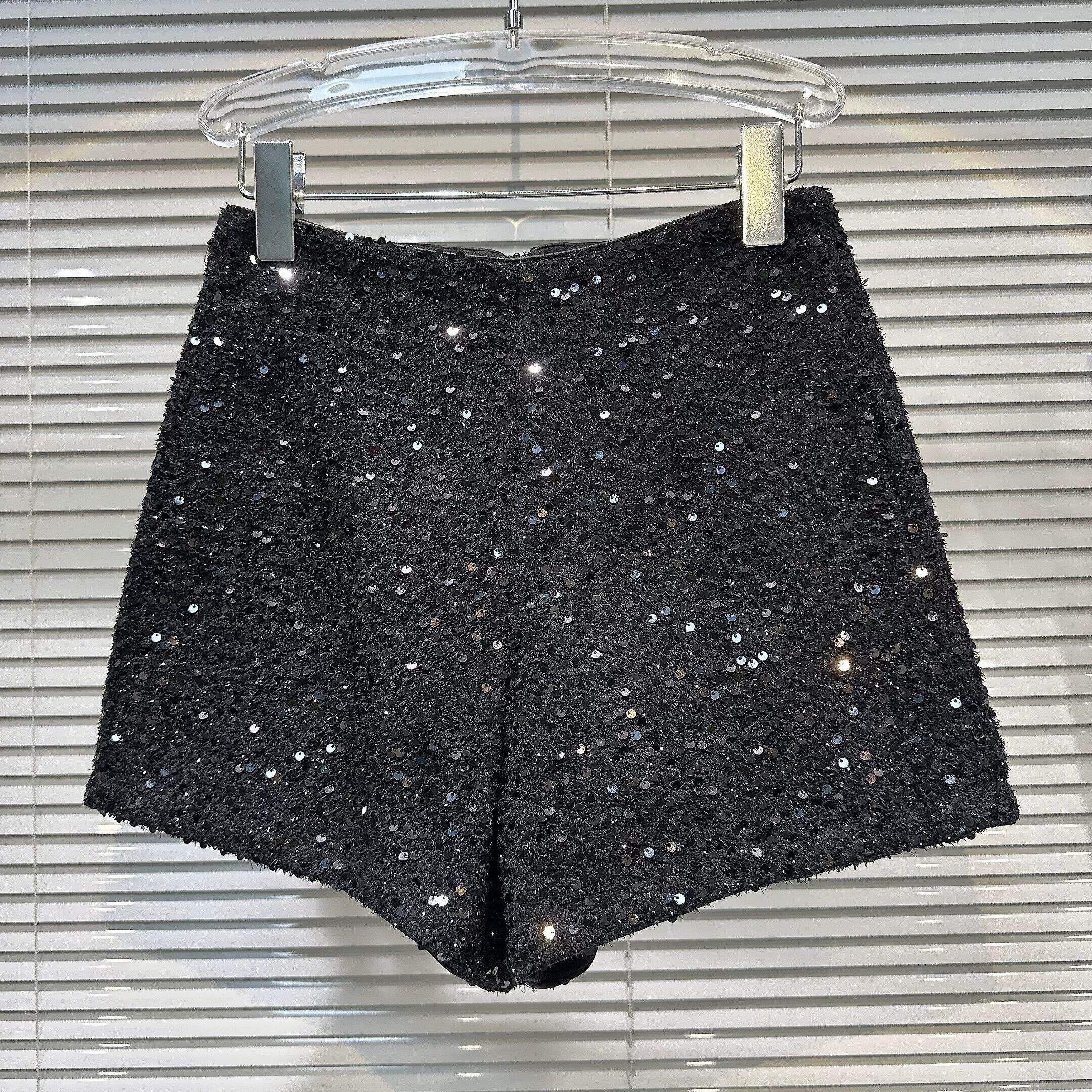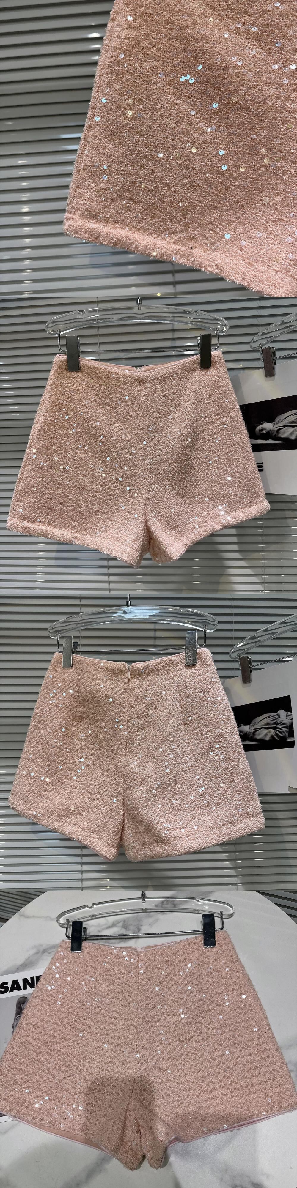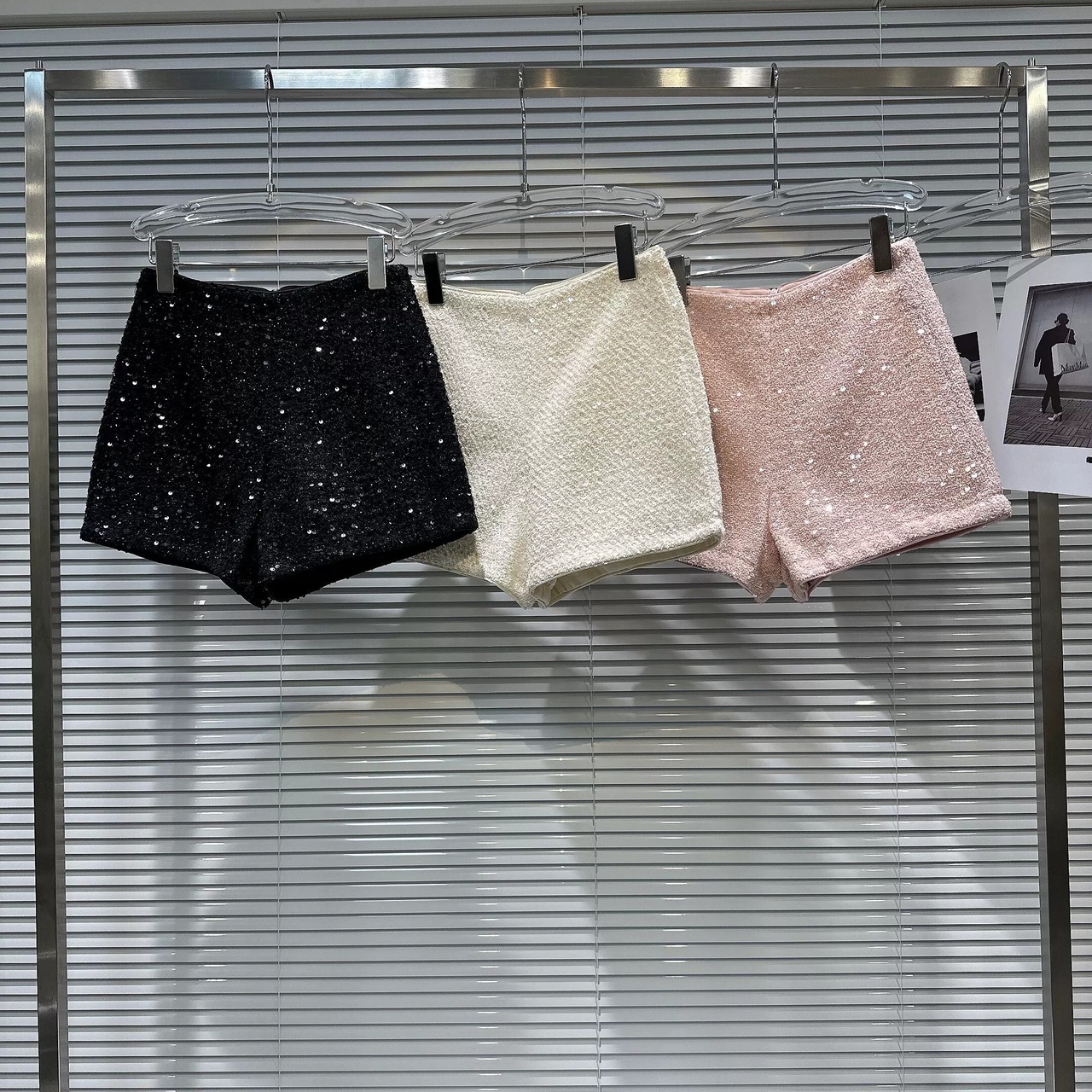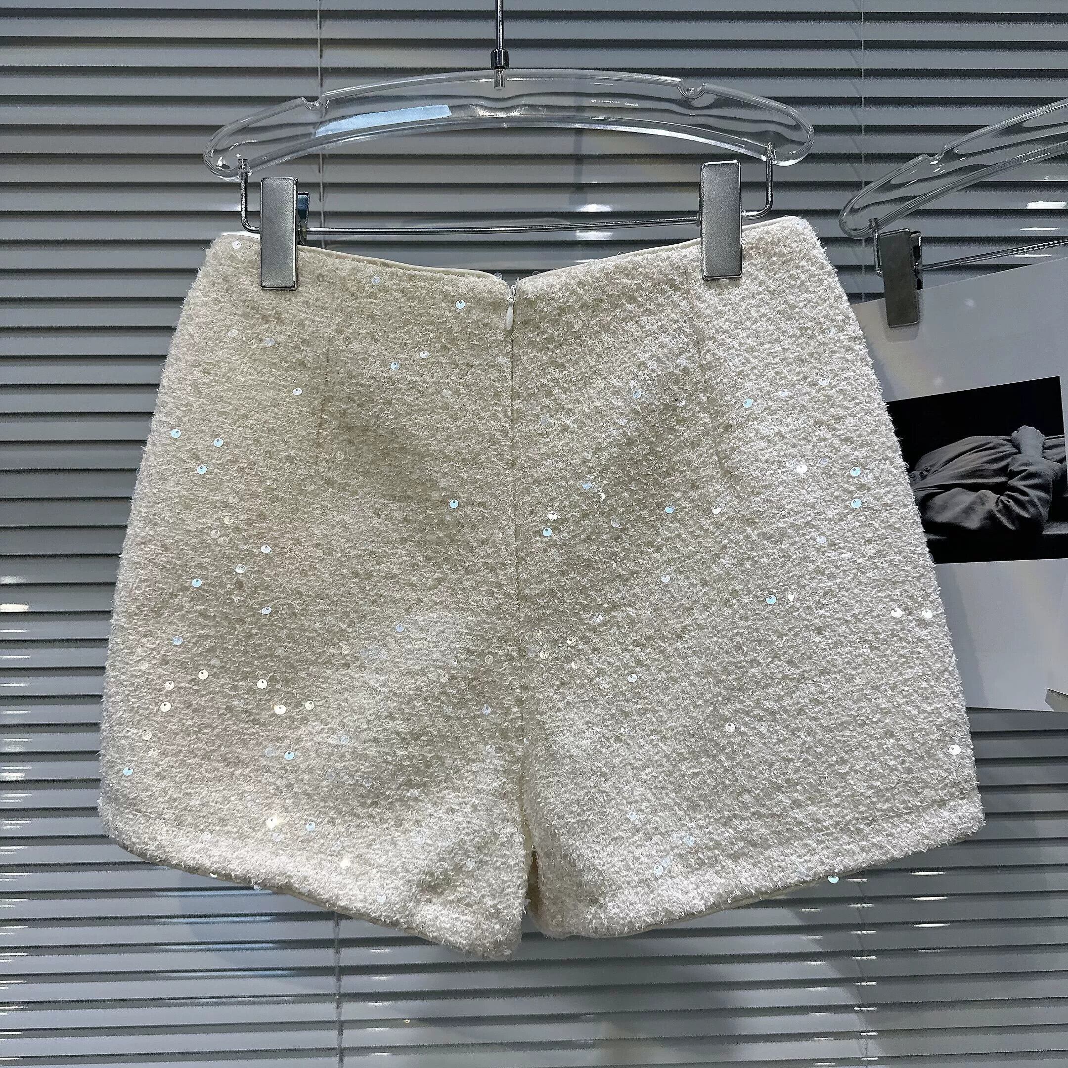 インターネットセレブと同じスタイル2024春の新作ダークスパンコールツイード無地スリムストレートスリークォーターショーツ スプリング 春物 ブルマー ソリッドカラー gyan3370137611134 | vestitialla