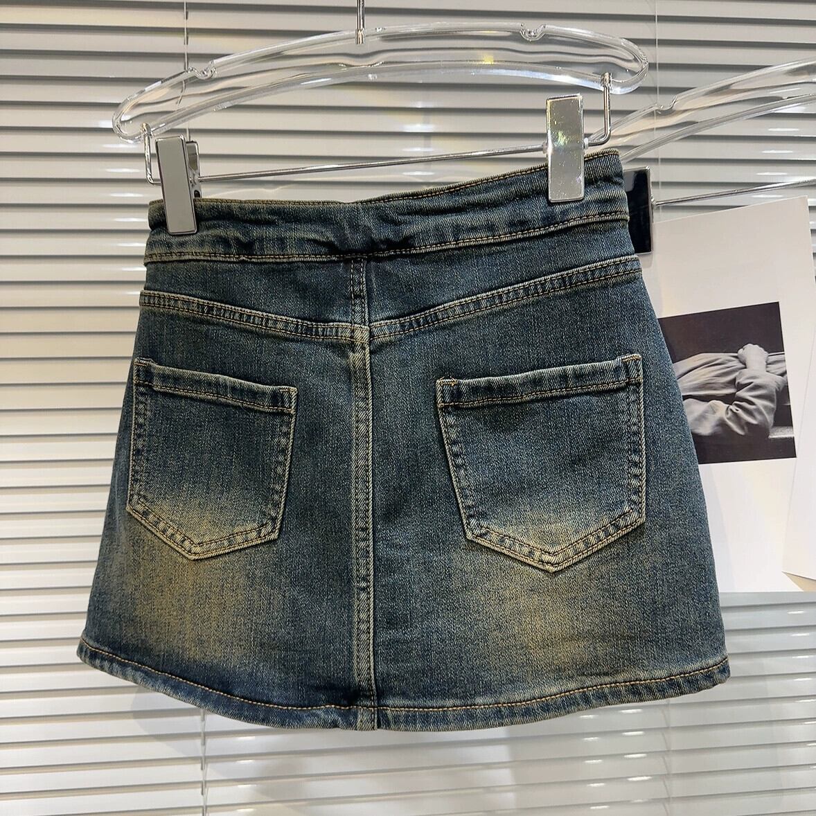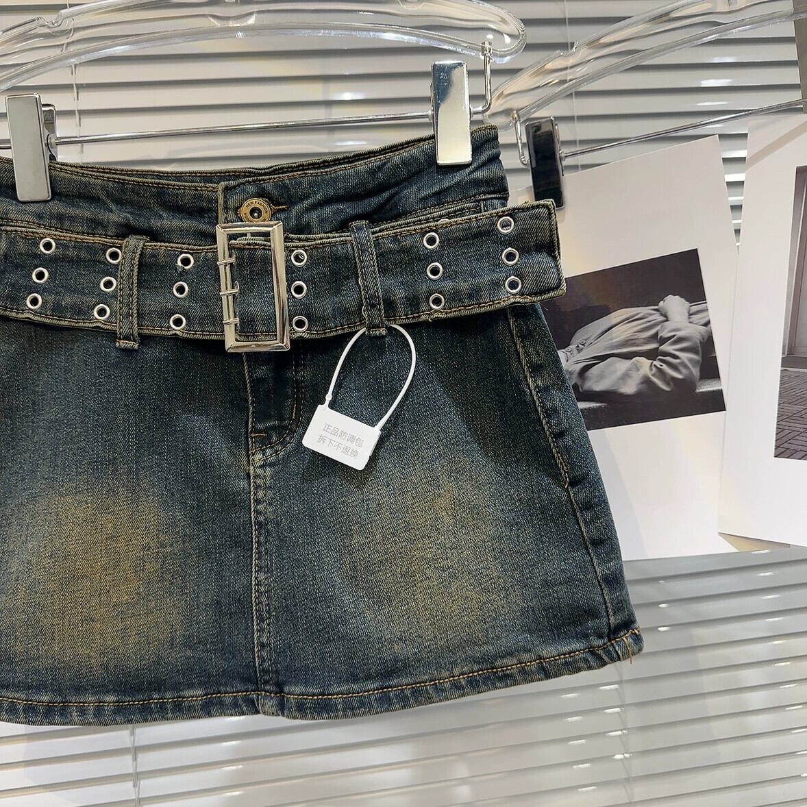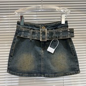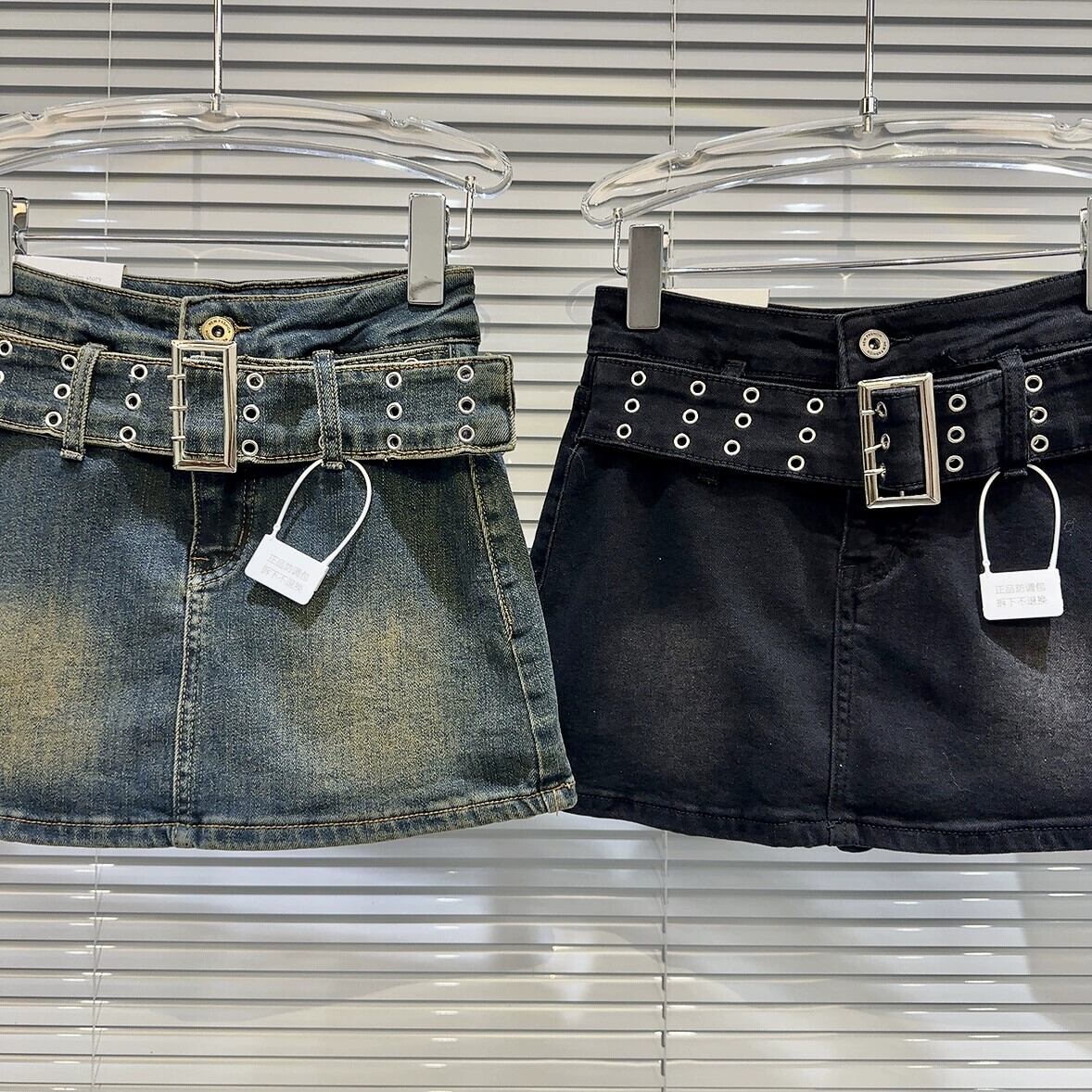 インターネットセレブと同じスタイル 2024 春の新作アメリカンレトロネクタイワイドベルト、内側ショートパンツ付きウォッシュデニムヒップスカート スプリング 春物 ハーネス ショーツ ブルマー gyan3338333144273 | vestitialla