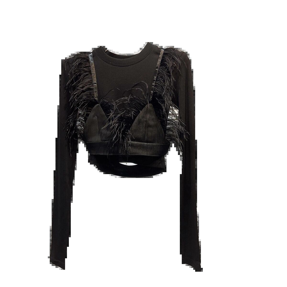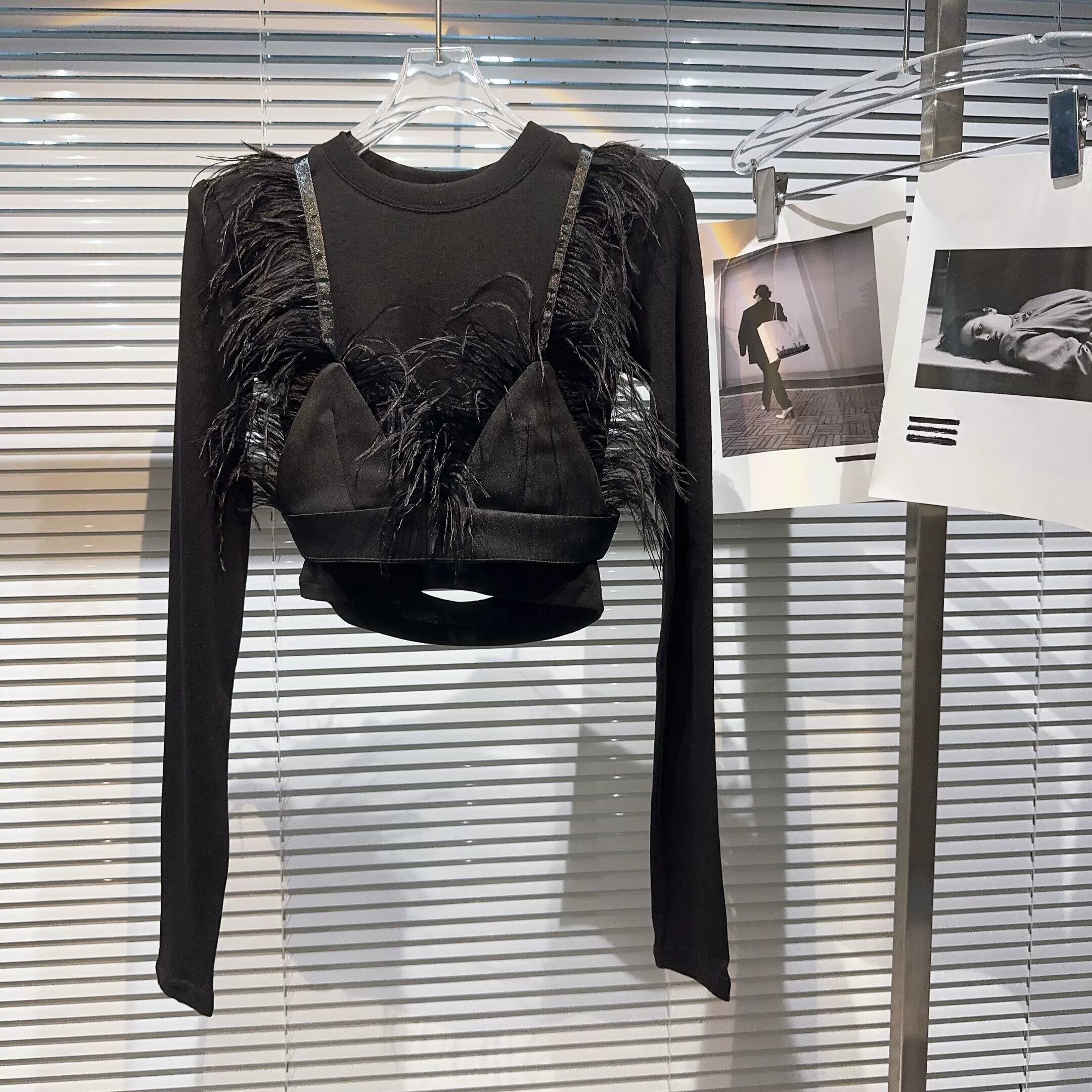 インターネットセレブの同じスタイル2024春の新しいスタイルの小さな香りのセレブファーベスト+長袖Tシャツツーピーススーツ女性 ロング スプリング 春物 gyan3349793490827 | vestitialla