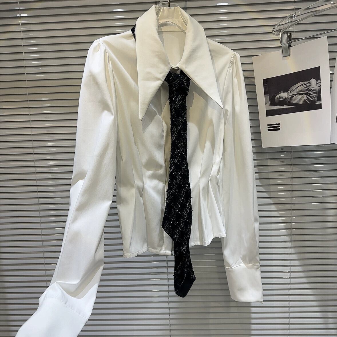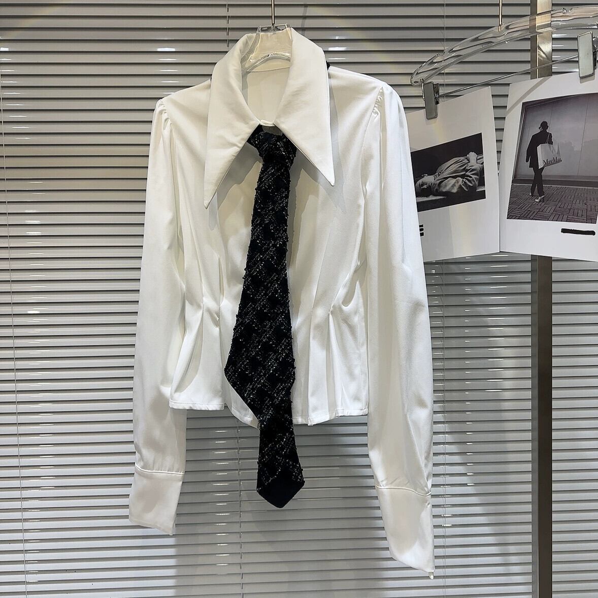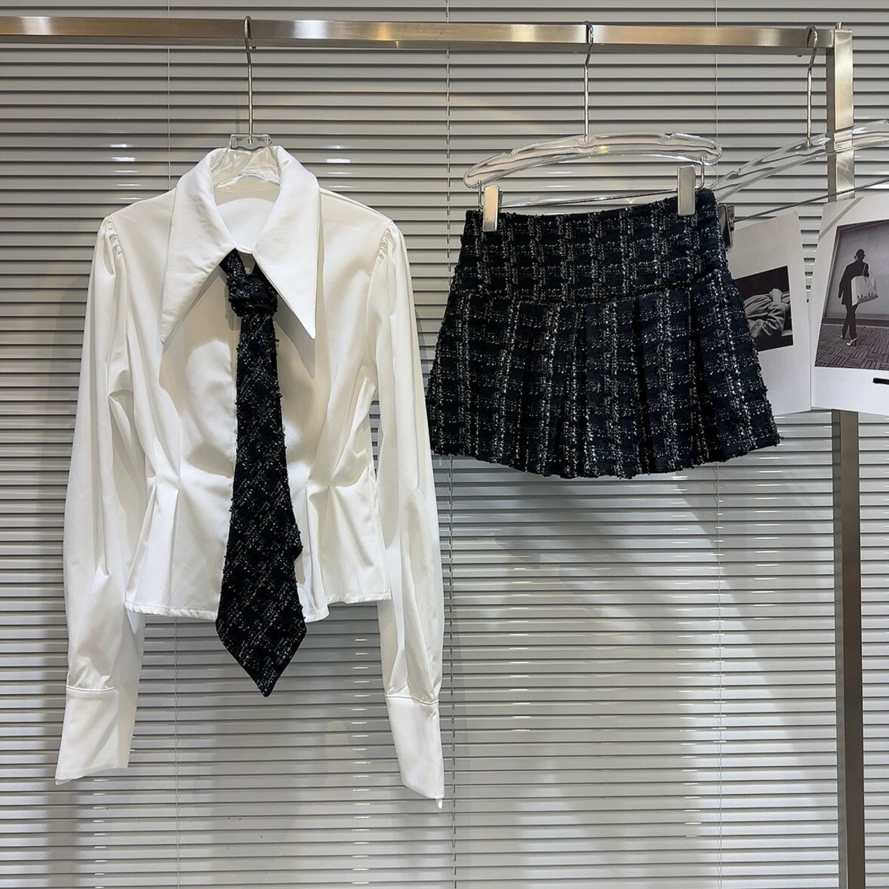 インターネット有名人の同じスタイル2024春の新しいフレンチスタイルスタイルネクタイ気質シャツ+ツイードスカートスーツ女性 スプリング 春物 gyan3373875102665 | vestitialla