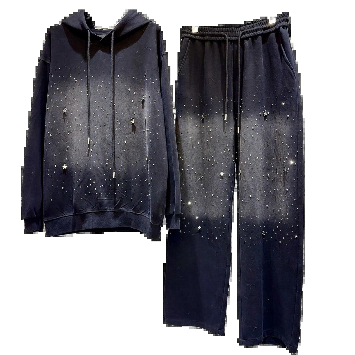 インターネット有名人の同じ2024春の新しいニッチスタイルの五芒星空スウェットシャツ+グラデーションワイドレッグカジュアルパンツスーツ スプリング 春物 gyan3360887898828 | vestitialla