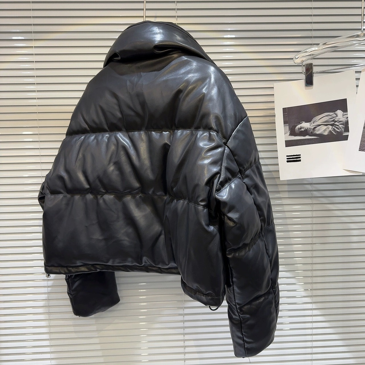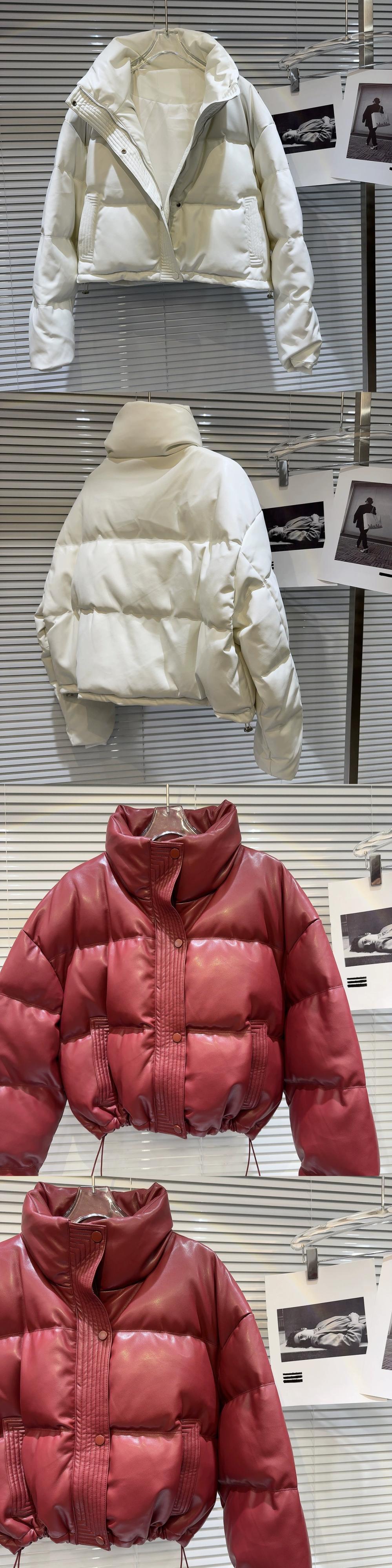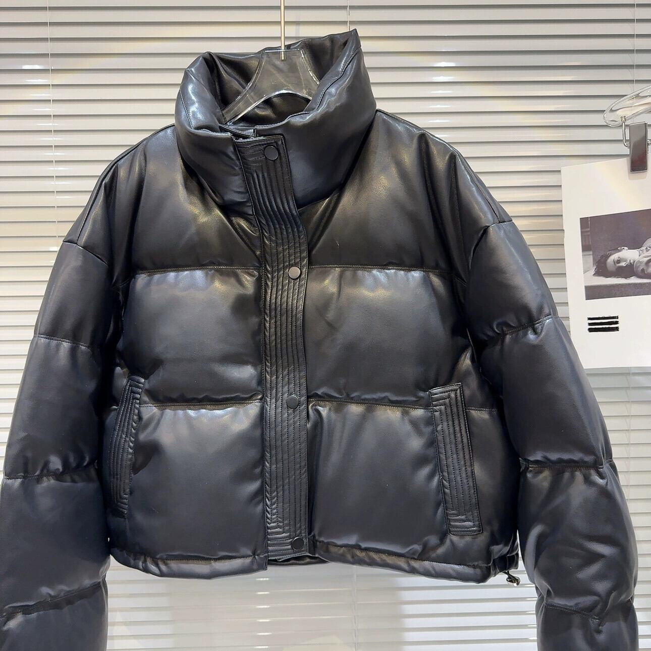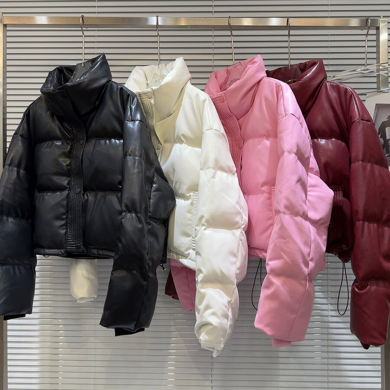 インターネットセレブと同じスタイル 2024 冬の新 PU レザー巾着スタンドカラー暖かいダウンジャケットジャケットトップ女性 ウィンター 冬物 gyan3332642741794 | vestitialla