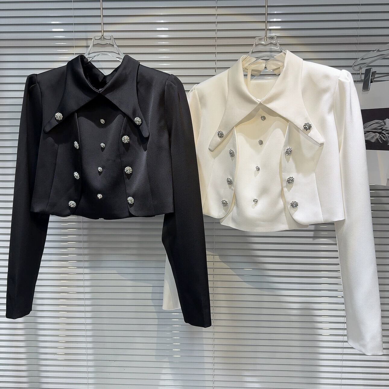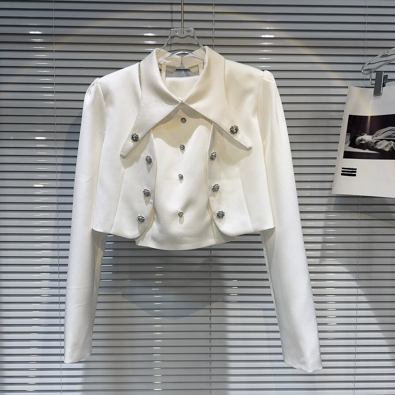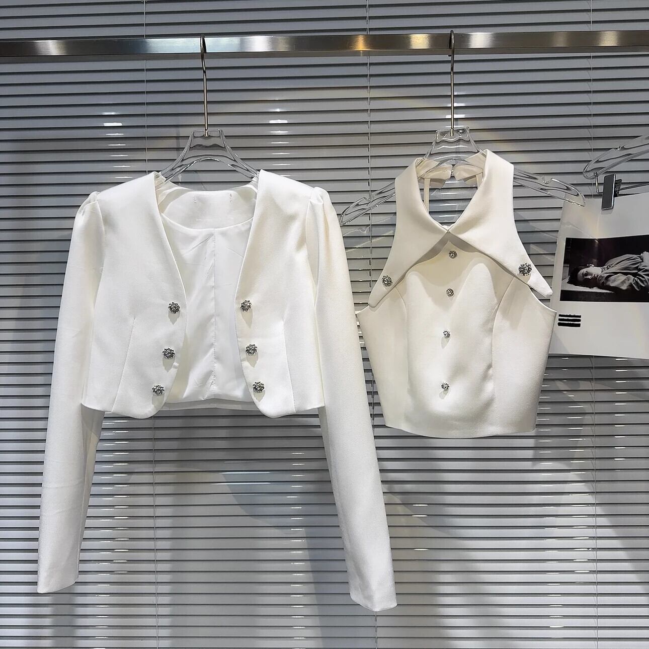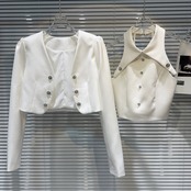 ネットセレブと同じスタイル 2024 春の新スタイル小さな香りラインストーンバックル社交界のホルターネックベスト + ショートジャケット 2 点セット女性 スプリング 春物 gyan3313728688368 | vestitialla