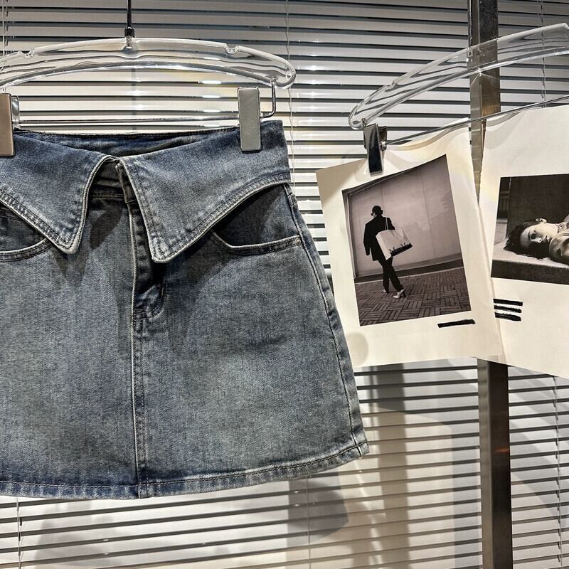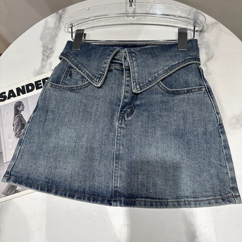 インターネット有名人の同じスタイル2024春の新しいニッチスタイル折り返しウエストバンドウォッシュ加工デニムヒップスカートショートスカート スプリング 春物 gyan3331228645242 | vestitialla