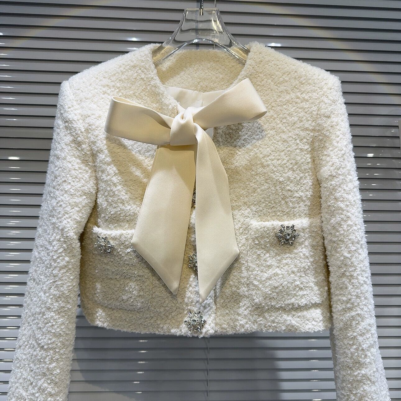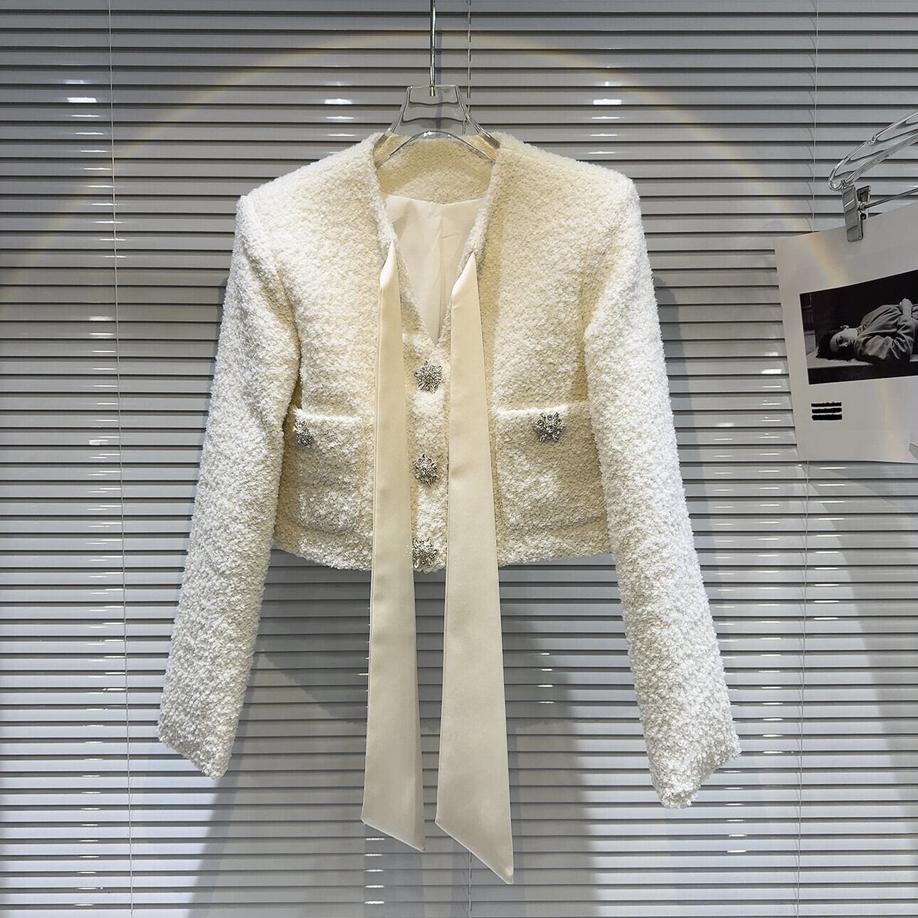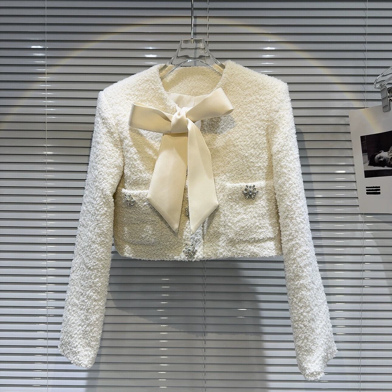 ネット有名人の同じ2024春の新しいスタイルの小さな香りの良い蝶ネクタイ気質社交界の毛皮のような厚いショートコート リボン スプリング 春物 gyan3349328618654 | vestitialla