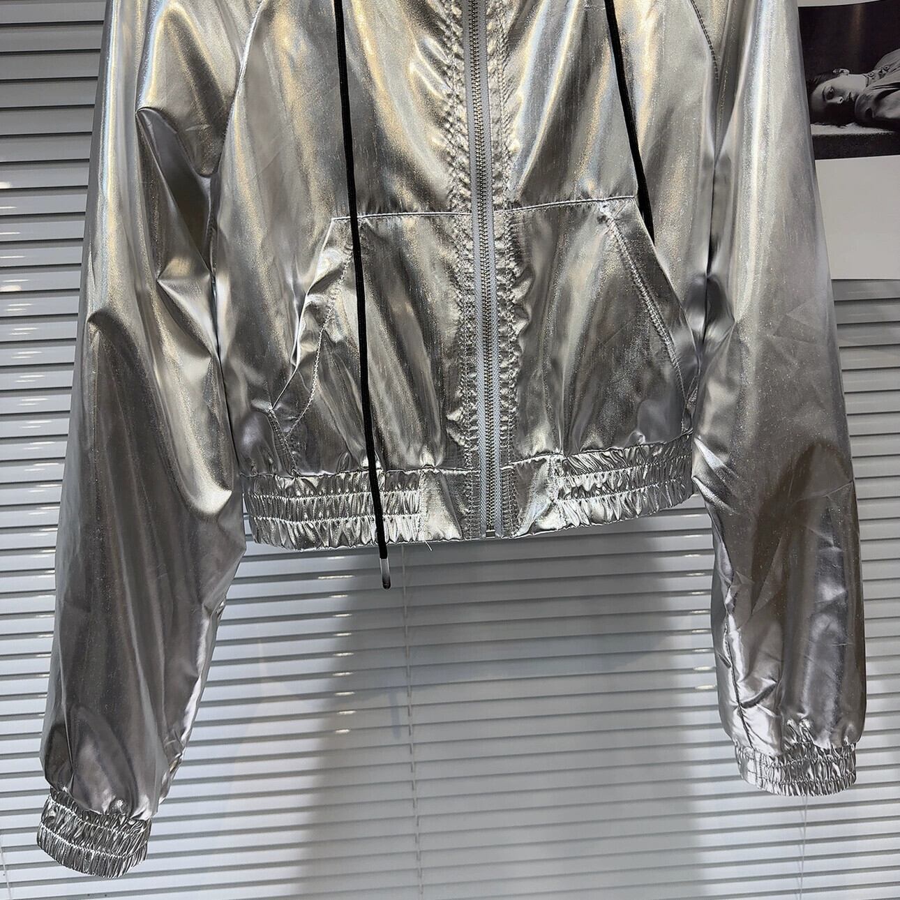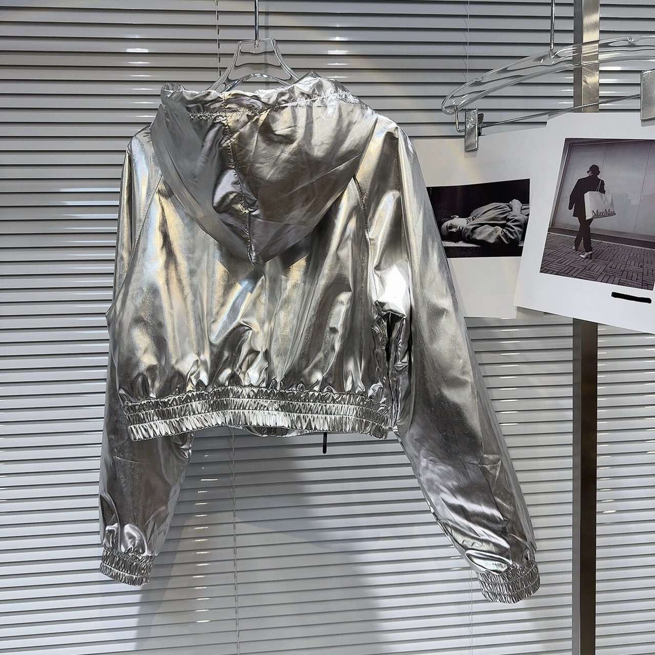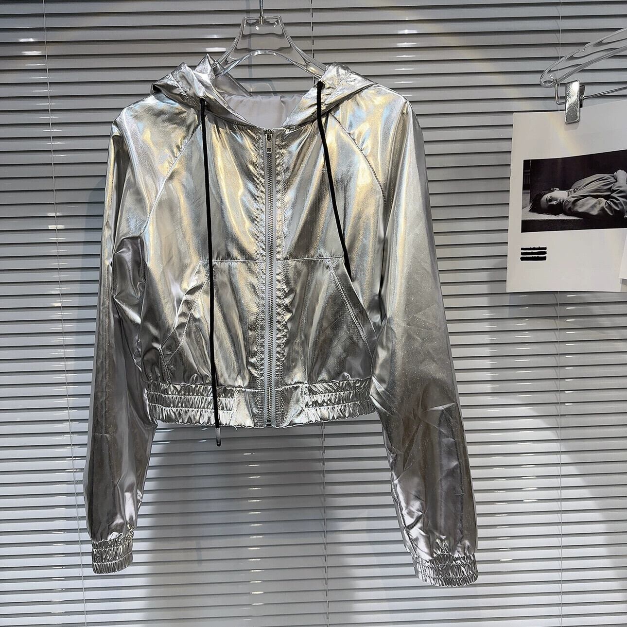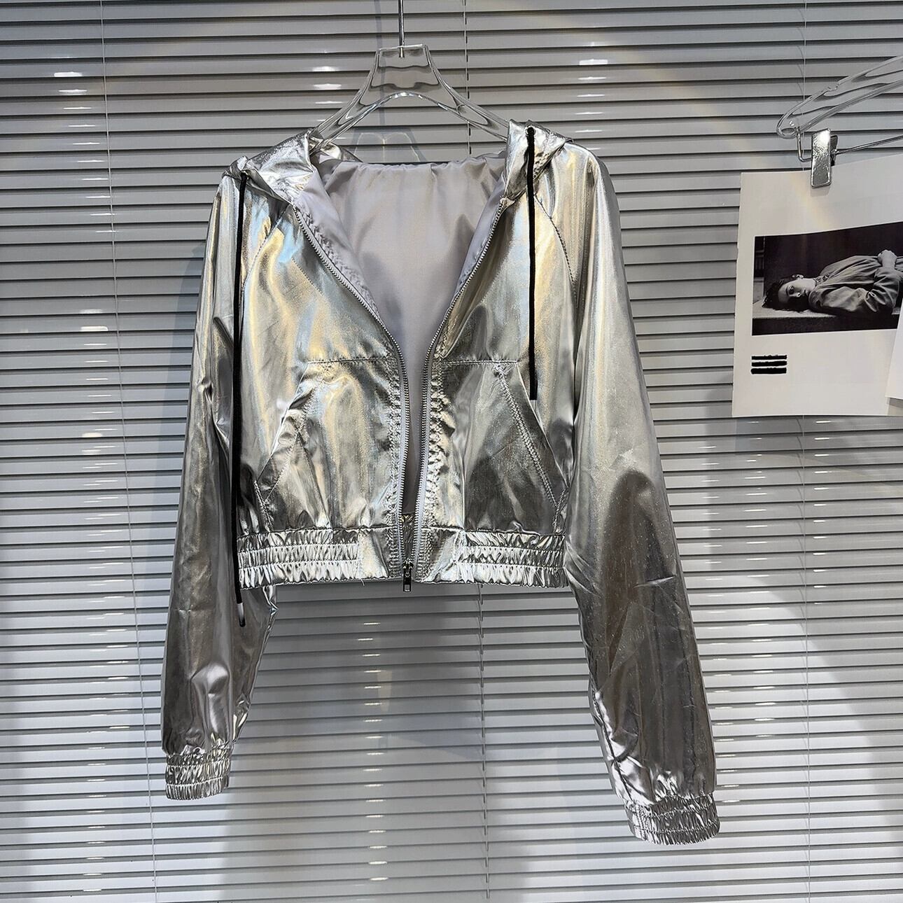 インターネット有名人の同じ2024春の新しいニッチスタイルスペースリキッドシルバーネクタイフード付き日焼け止めショートコートジャケット スプリング 春物 銀 gyan336908634760 | vestitialla