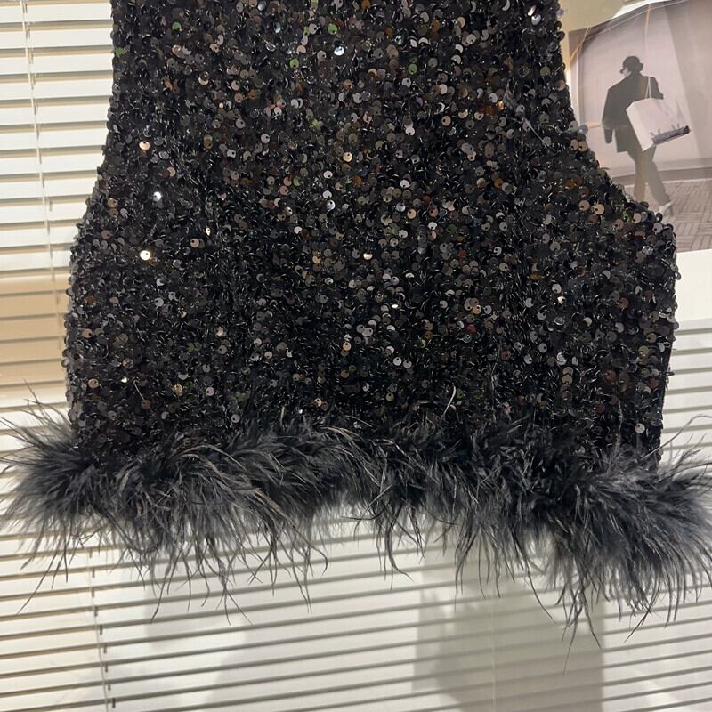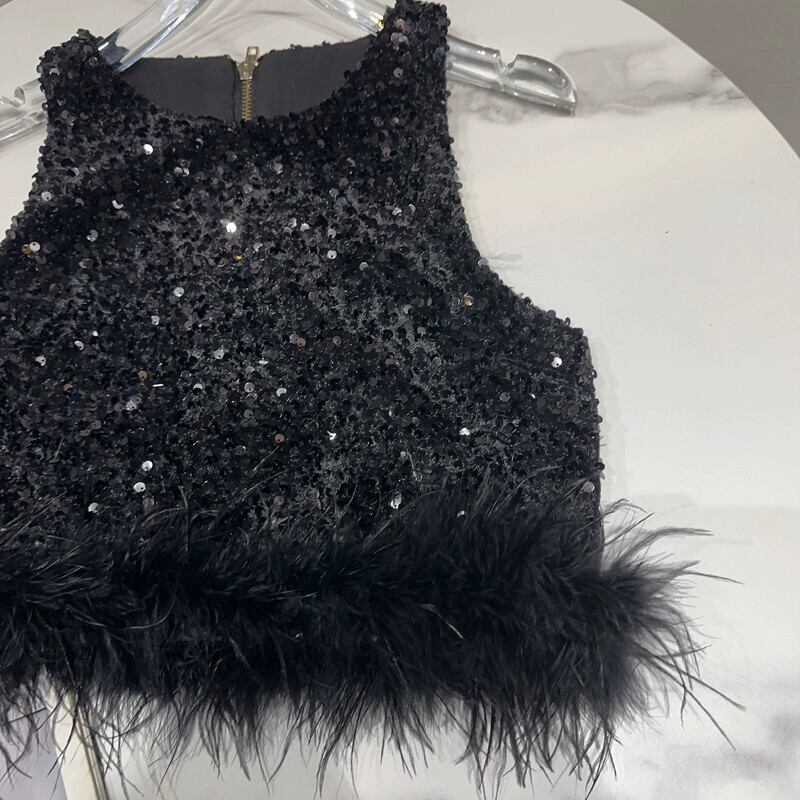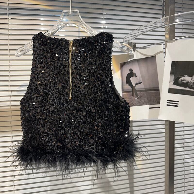 インターネットセレブと同じスタイル 2024 春の新スタイル Xiaoxiang フェザーファーエッジ光沢のあるスパンコールセレブジッパーベストトップ スプリング 春物 gyan3339171587054 | vestitialla