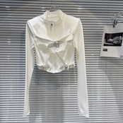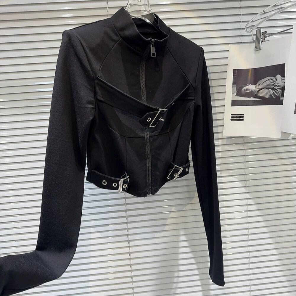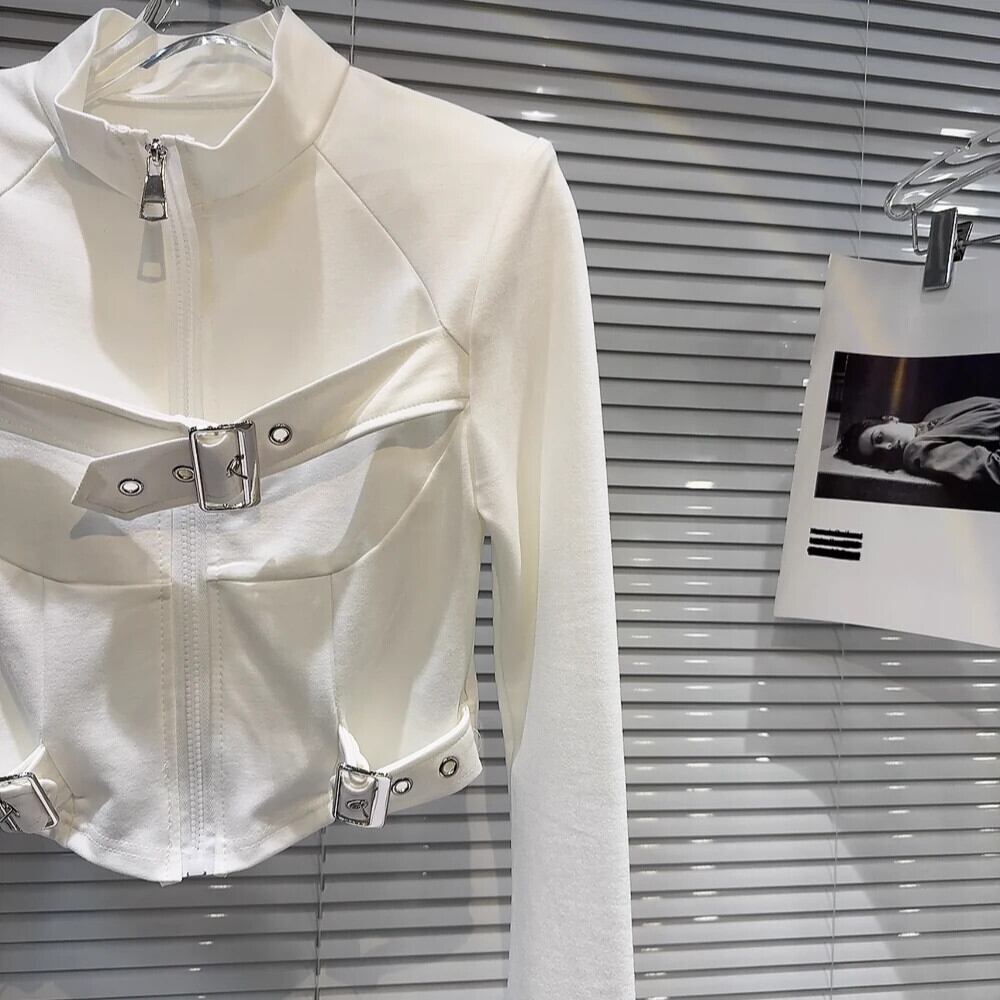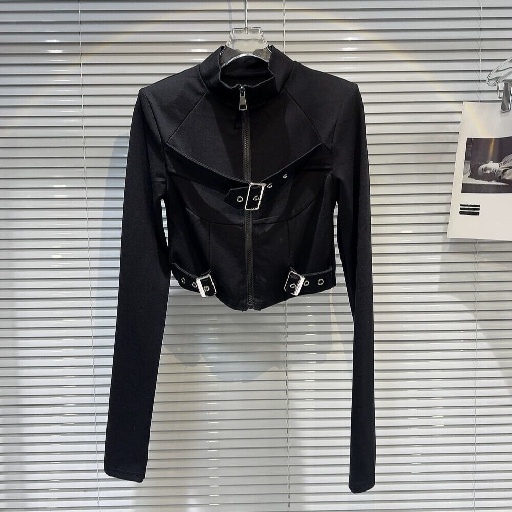 インターネットセレブと同じスタイル 2024 春の新ニッチメタルバックルストラップ長袖スタンドカラージッパー Tシャツトレンディ ロング スプリング 春物 gyan3323422179094 | vestitialla