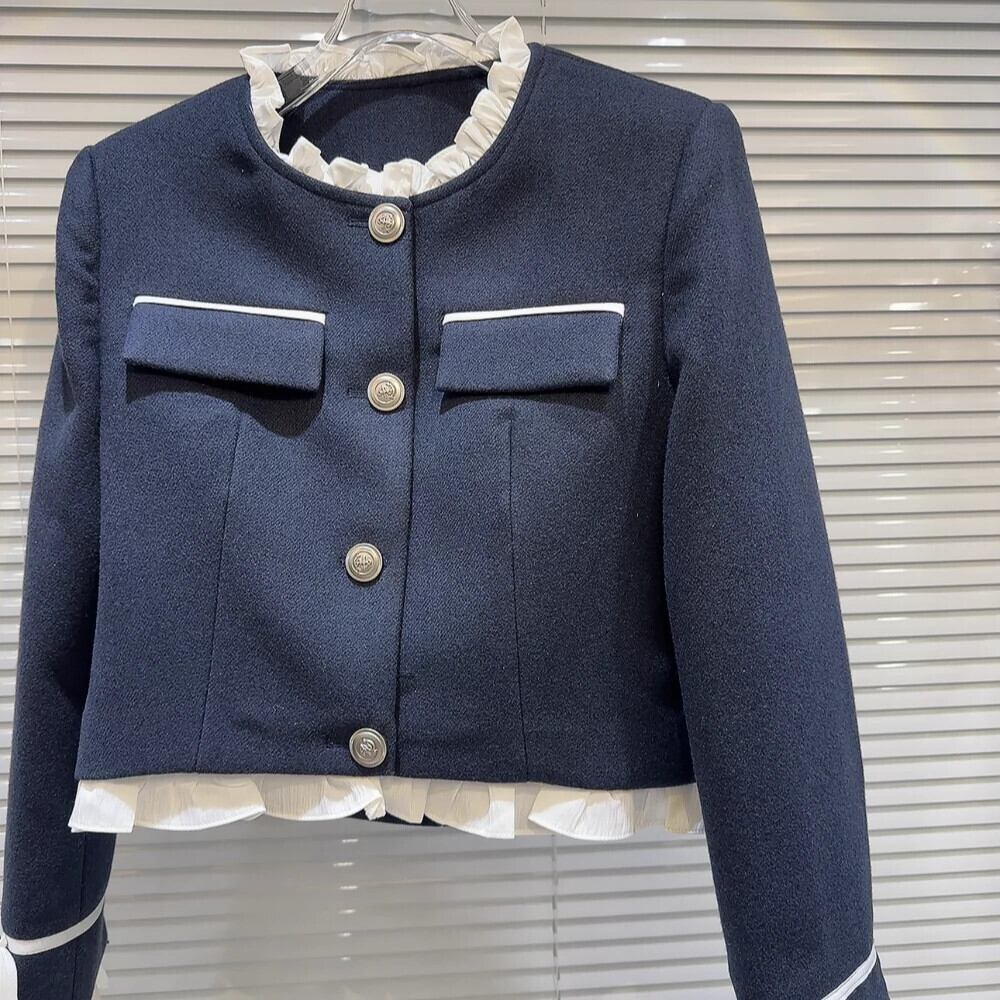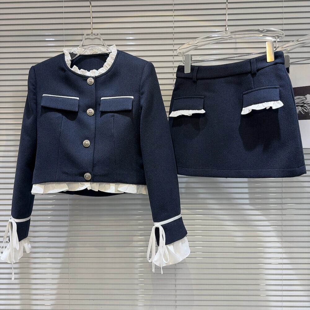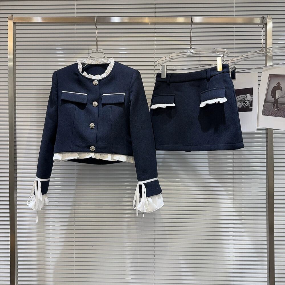 インターネットセレブと同じスタイル 2024 春の新スタイル小さな香りのスタイルプリーツレーススーツショートジャケット + ショートスカートスーツ女性 スプリング 春物 gyan3346419462605 | vestitialla
