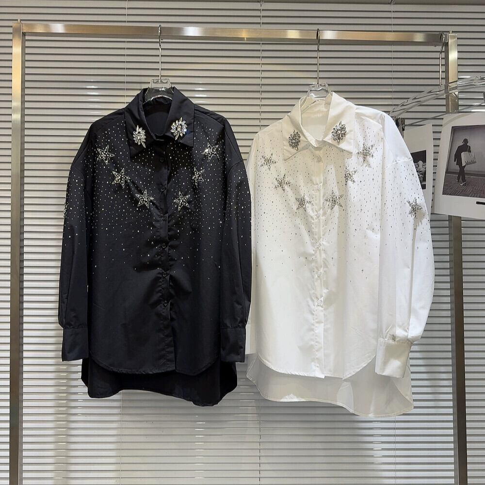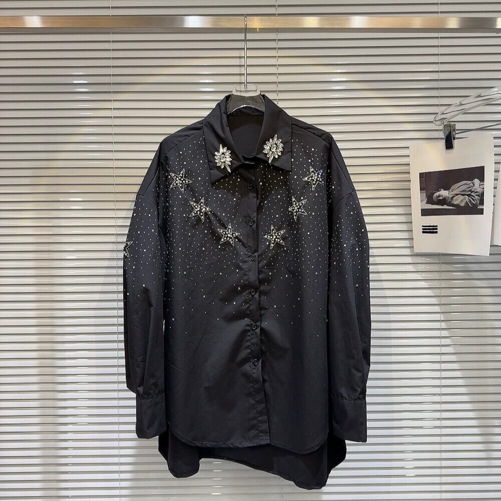 インターネットセレブと同じスタイル 2024 春の新しいニッチスタイルスターダイヤモンドパターン重工業ルーズダークシャツシャツ女性 スプリング 春物 gyan33694821415 | vestitialla