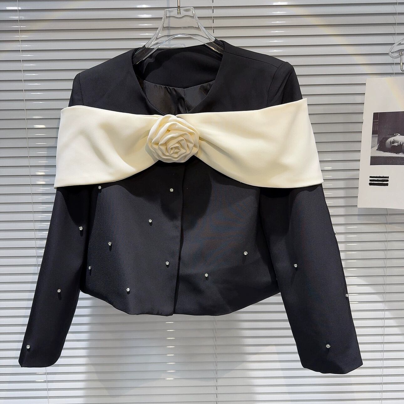 ネットセレブ同様2024春新スタイル小さな香り立体椿の花ストラップラインストーンビーズスーツショートジャケット スプリング 春物 フラワーデザイン gyan3366436600340 | vestitialla