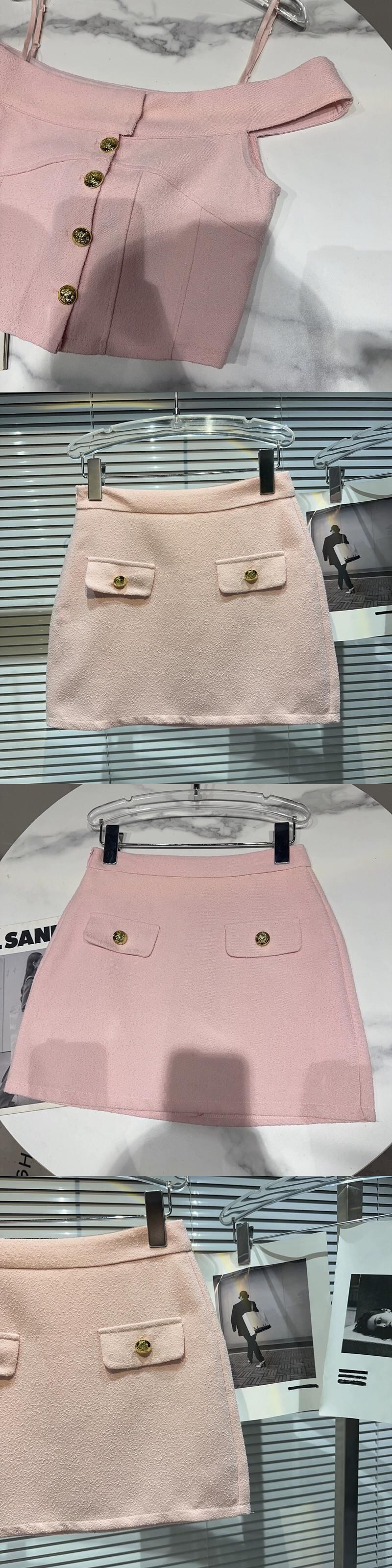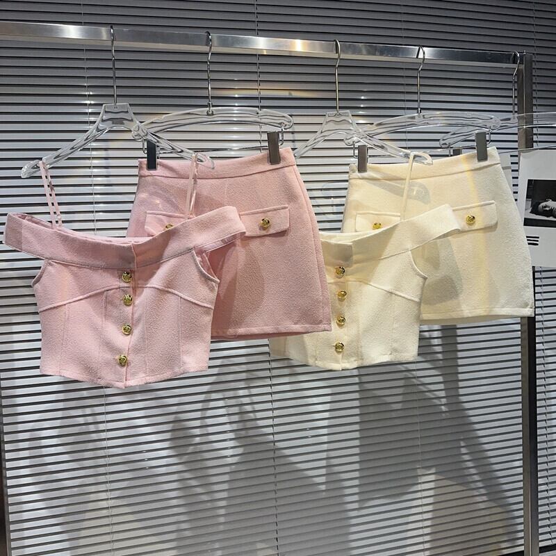 インターネット有名人の同じスタイル 2024 新しい夏のスタイル小さな香りのスタイルチクチクワンショルダーメタルバックルサスペンダー + ヒップカバースカートスーツ女性 サマー 夏物 gyan3386769463019 | vestitialla