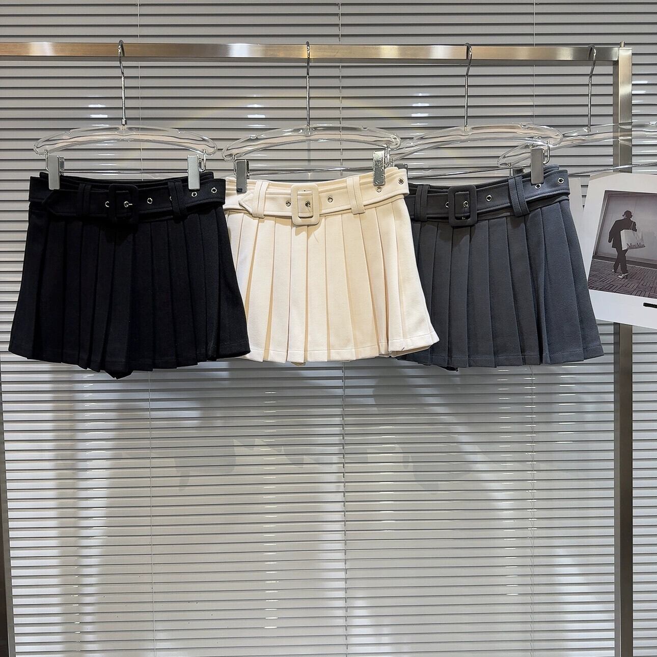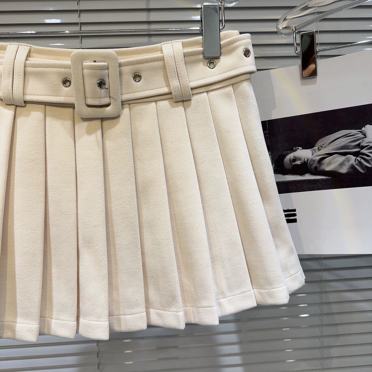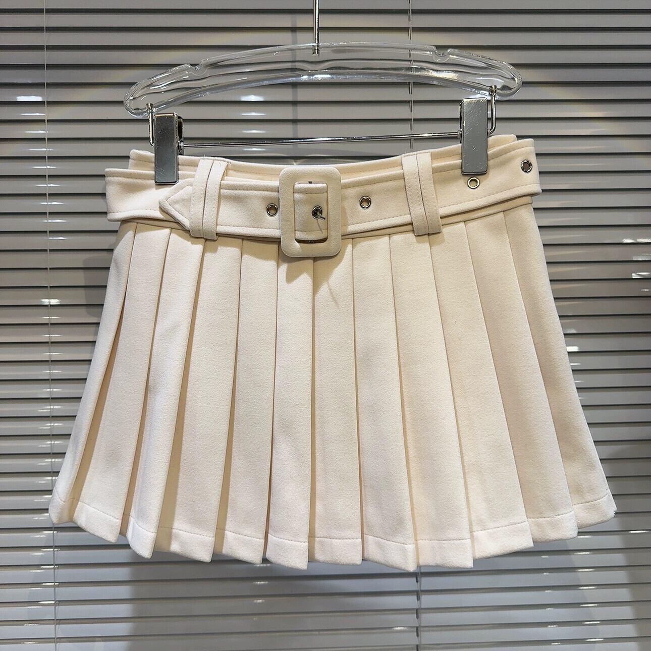 インターネット有名人同じスタイル 2024 春の新スタイル小さな香りのベルト装飾ソリッドカラーのウールのスカートプリーツスカートスカートの女性 スプリング 春物 ハーネス gyan3359904341097 | vestitialla
