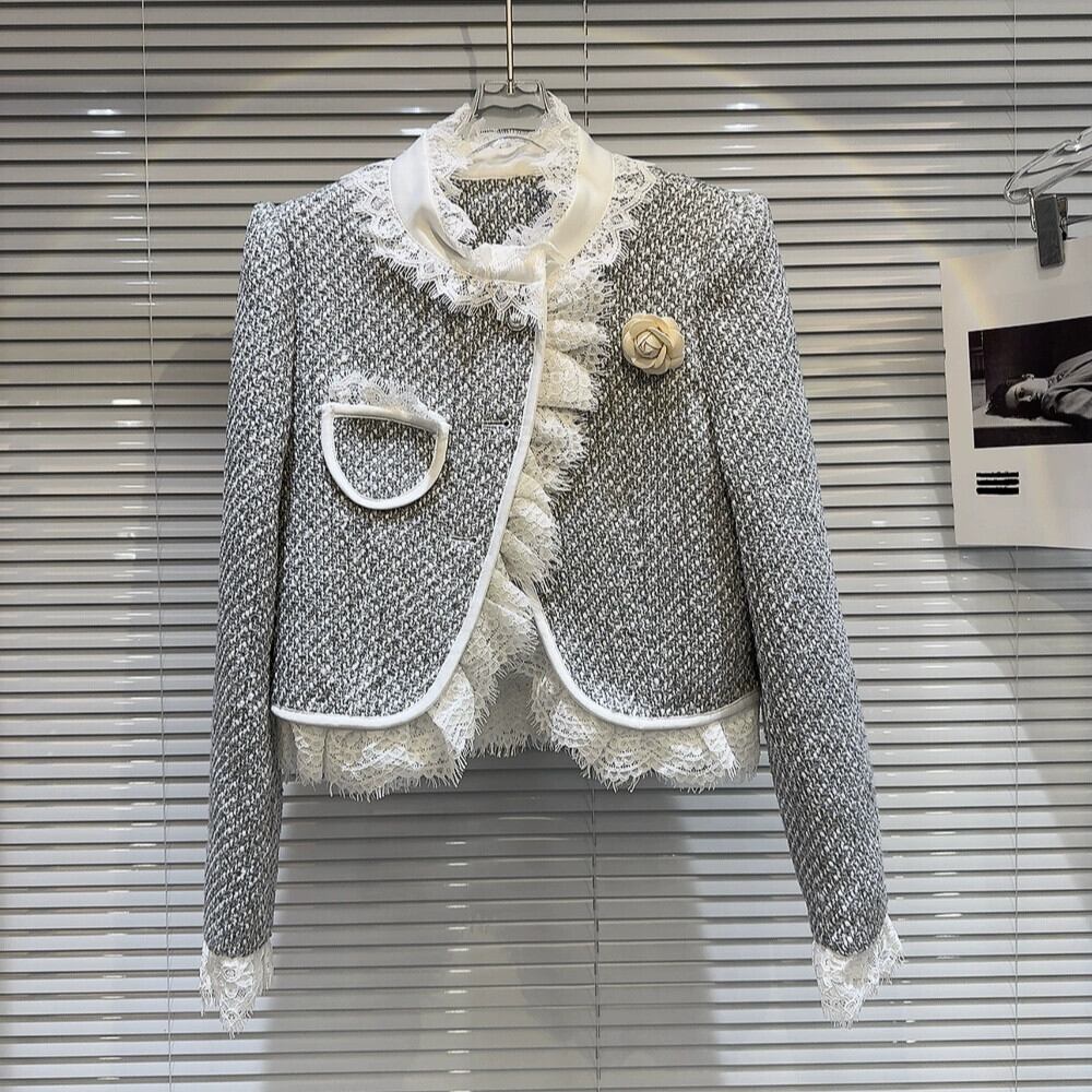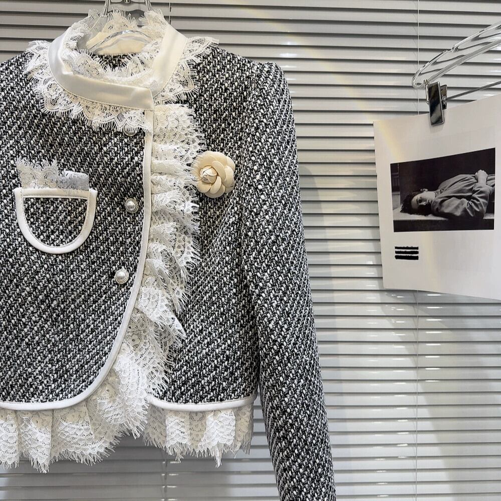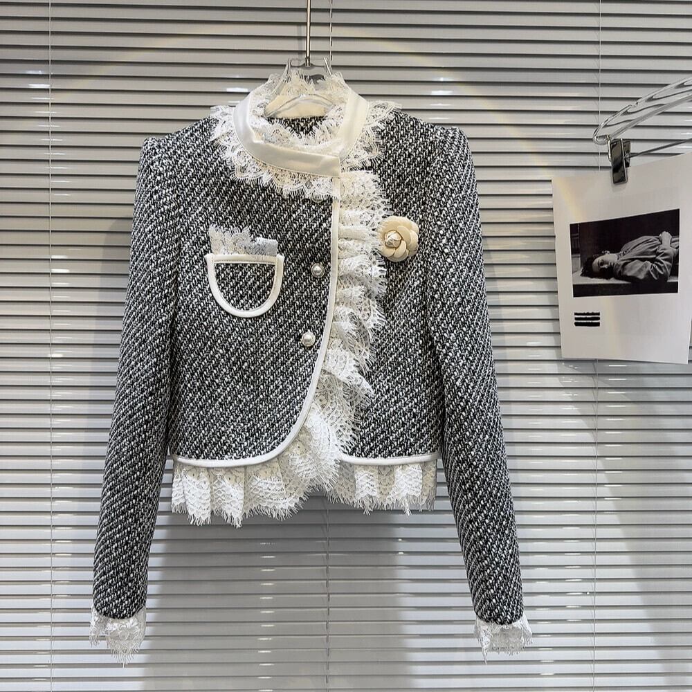 ネット有名人同スタイル2024春新スタイル小さな香りフラワーピンレースエッジツイードエレガントレディショートジャケット スプリング 春物 フラワーデザイン gyan3366750084256 | vestitialla