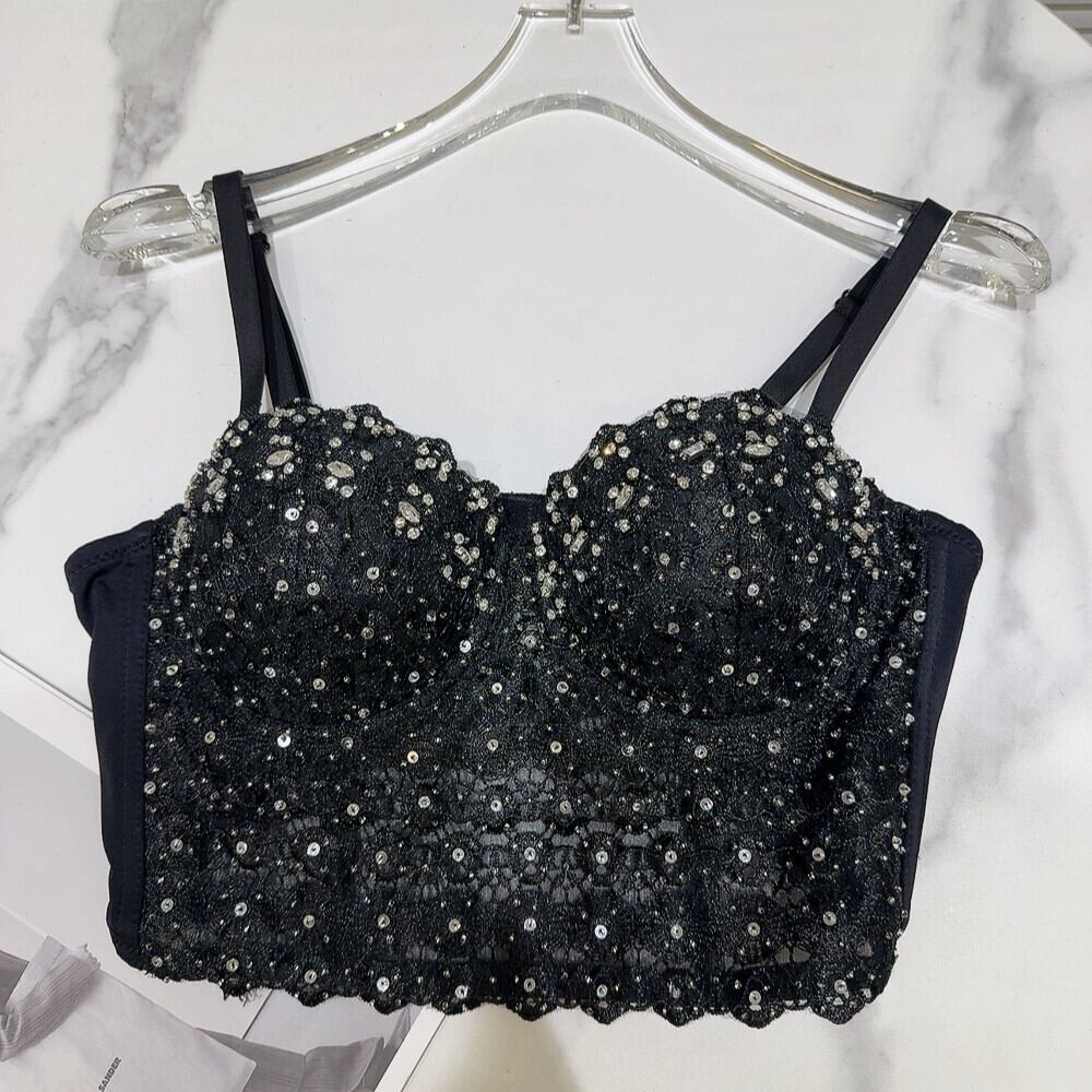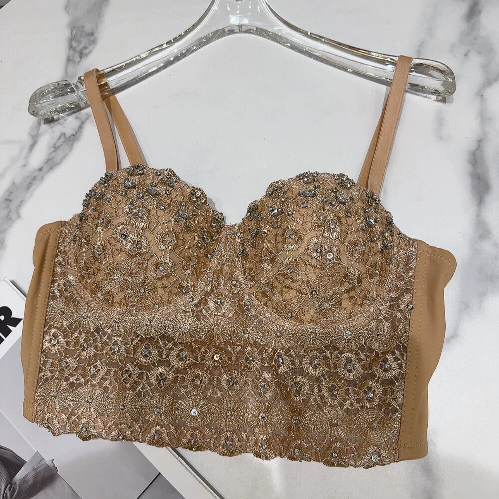 ネットセレブと同じスタイル2024春新作セレブラインストーンビーズレースフックワークフィッシュボーン立体胸パッドサスペンダーチューブトップ スプリング 春物 gyan3384260061259 | vestitialla