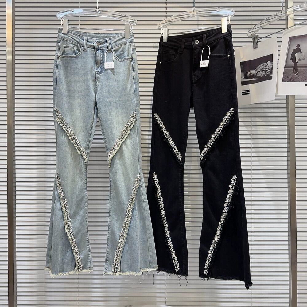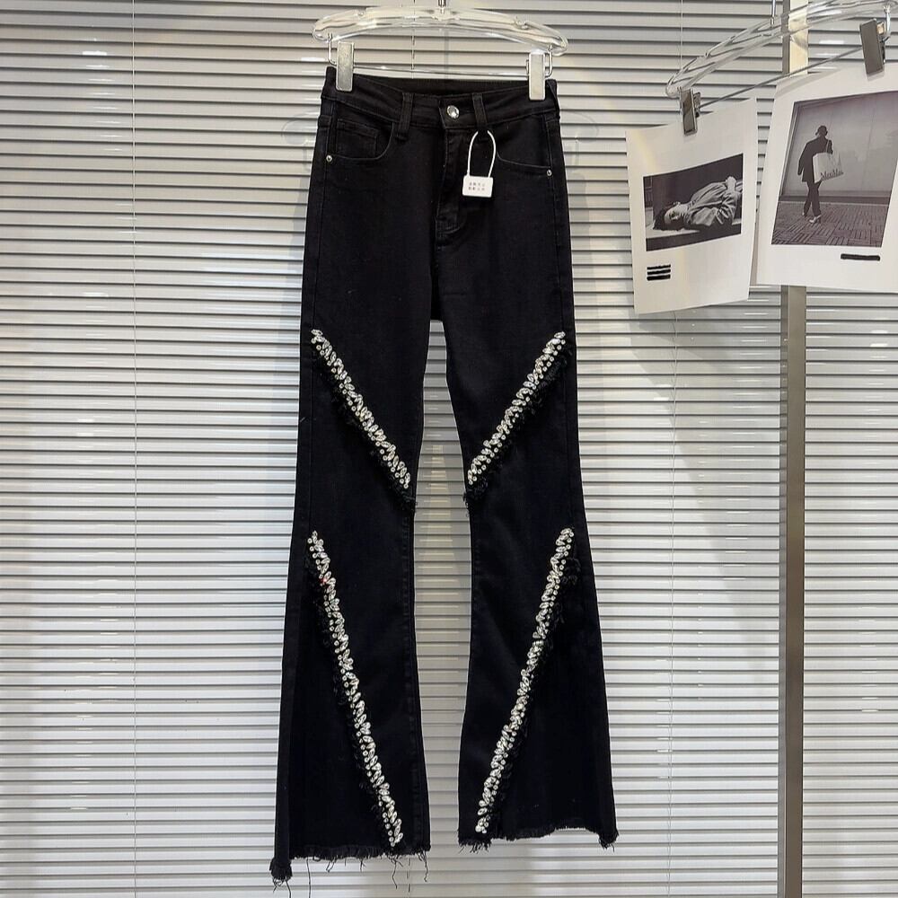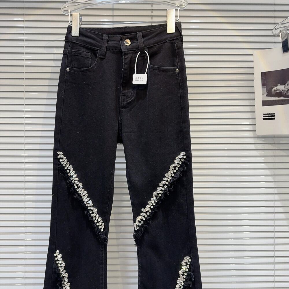インターネット有名人同じスタイル 2024 春の新ニッチラインストーン生エッジビーズ重工業スリムフィットマイクロフレアジーンズ女性 スプリング 春物 gyan3312049868943 | vestitialla