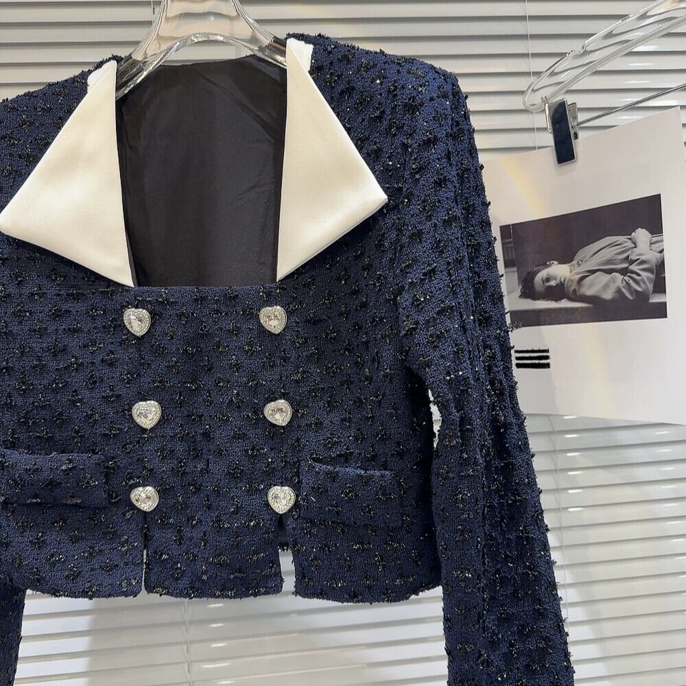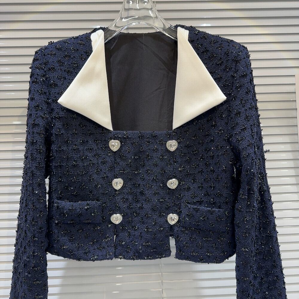 ネットセレブ同様2024春新スタイルスモールフレグランスダブルドレナージダイヤモンドボタンツイード気質レディースショートジャケットトップ スプリング 春物 gyan3355655952969 | vestitialla