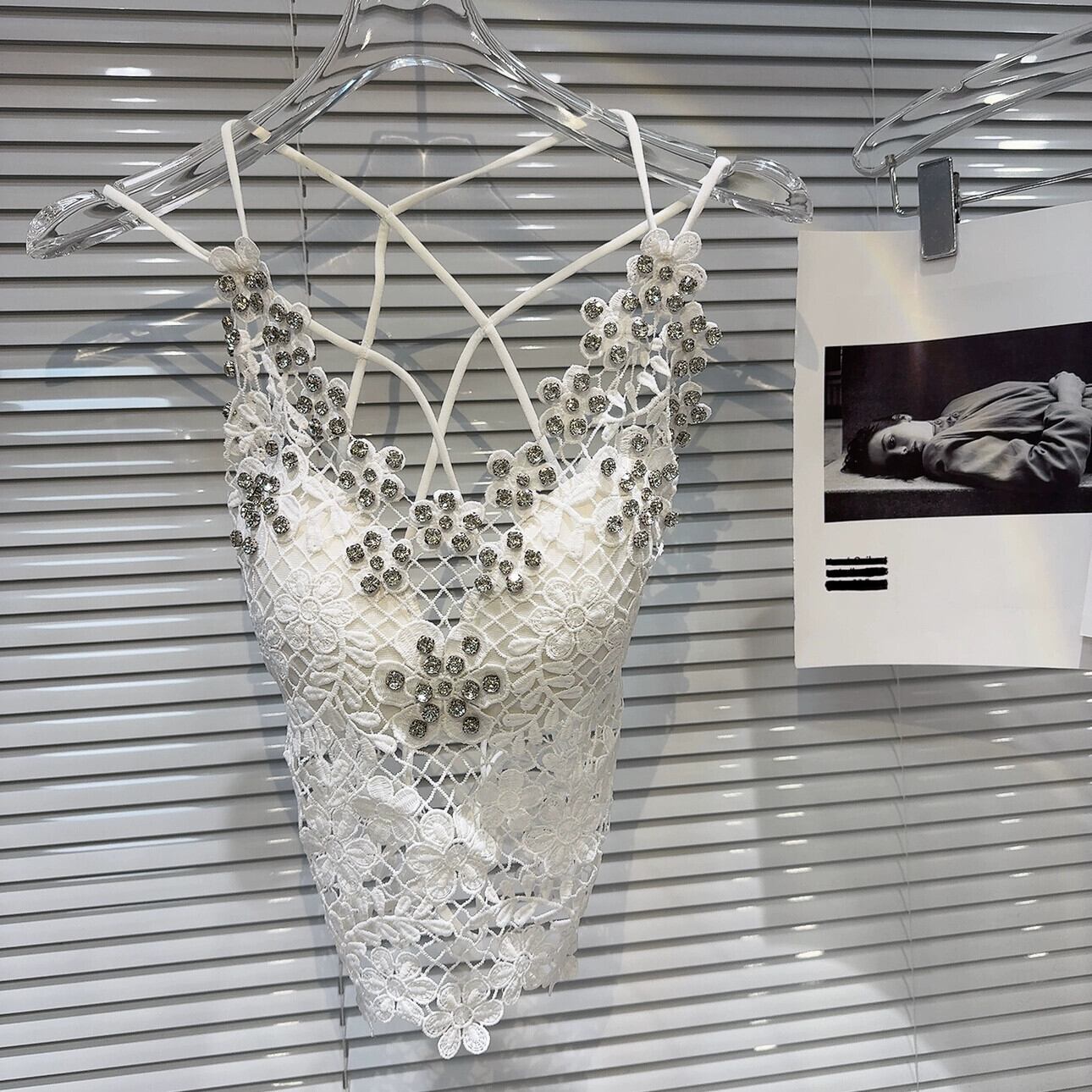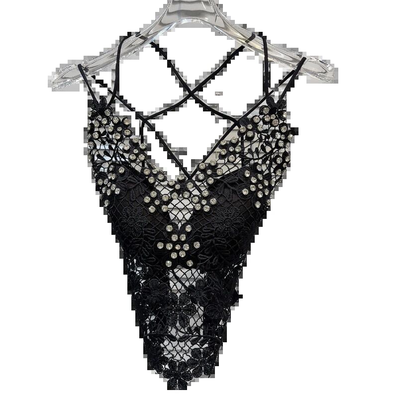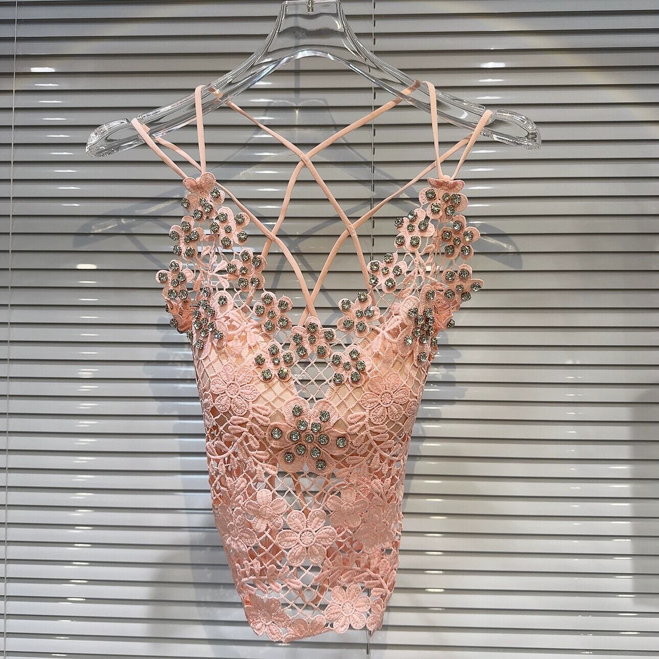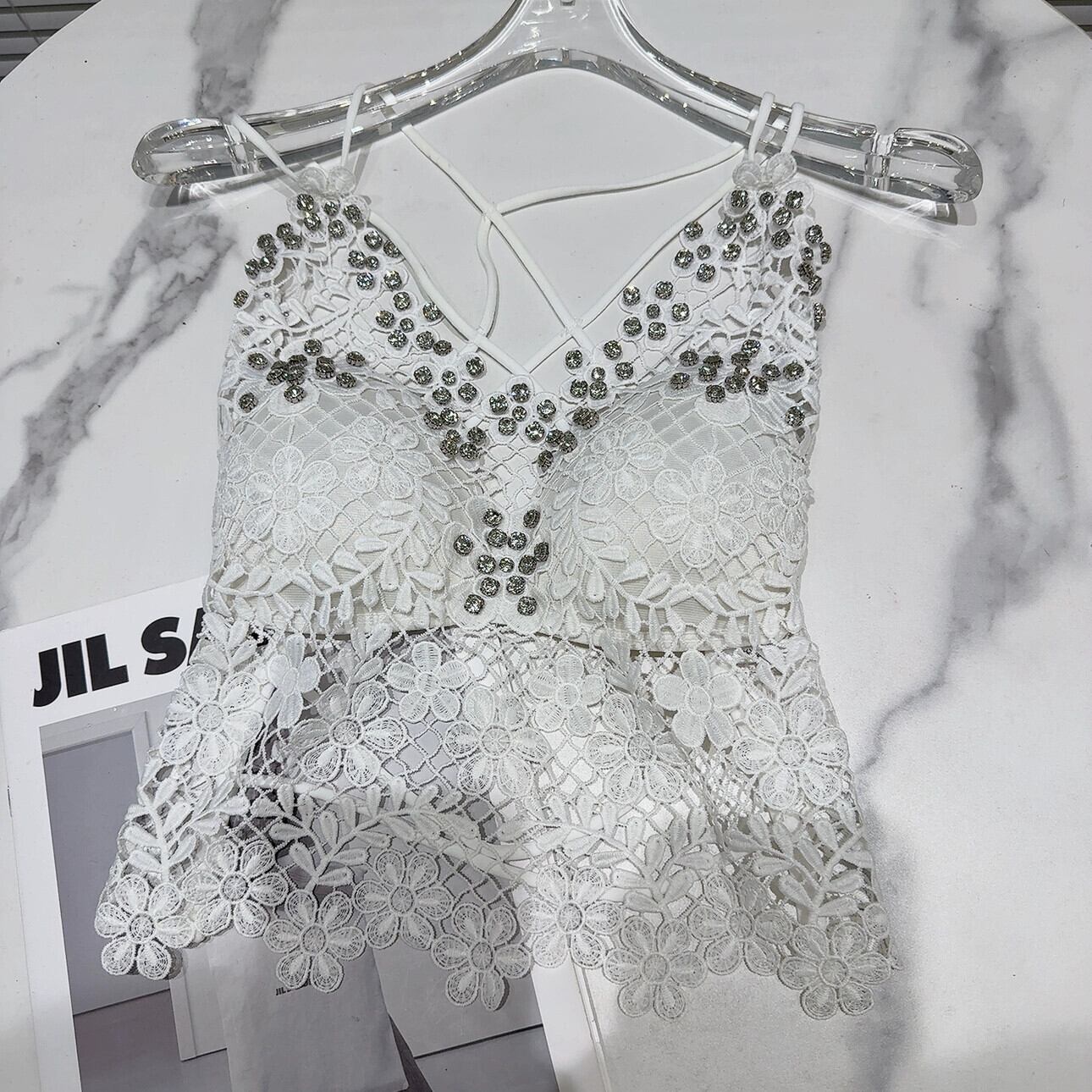 ネットセレブと同じスタイル2024春夏新作セクシーセレブ粒ラインストーンレース面ファスナーデザイン胸パッドキャミソール スプリング 春物 サマー 夏物 gyan3344890960066 | vestitialla