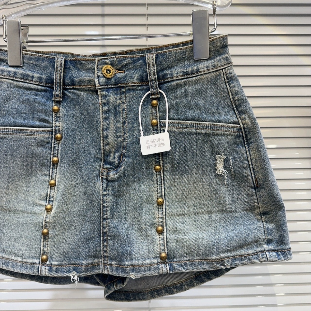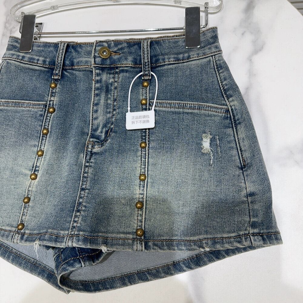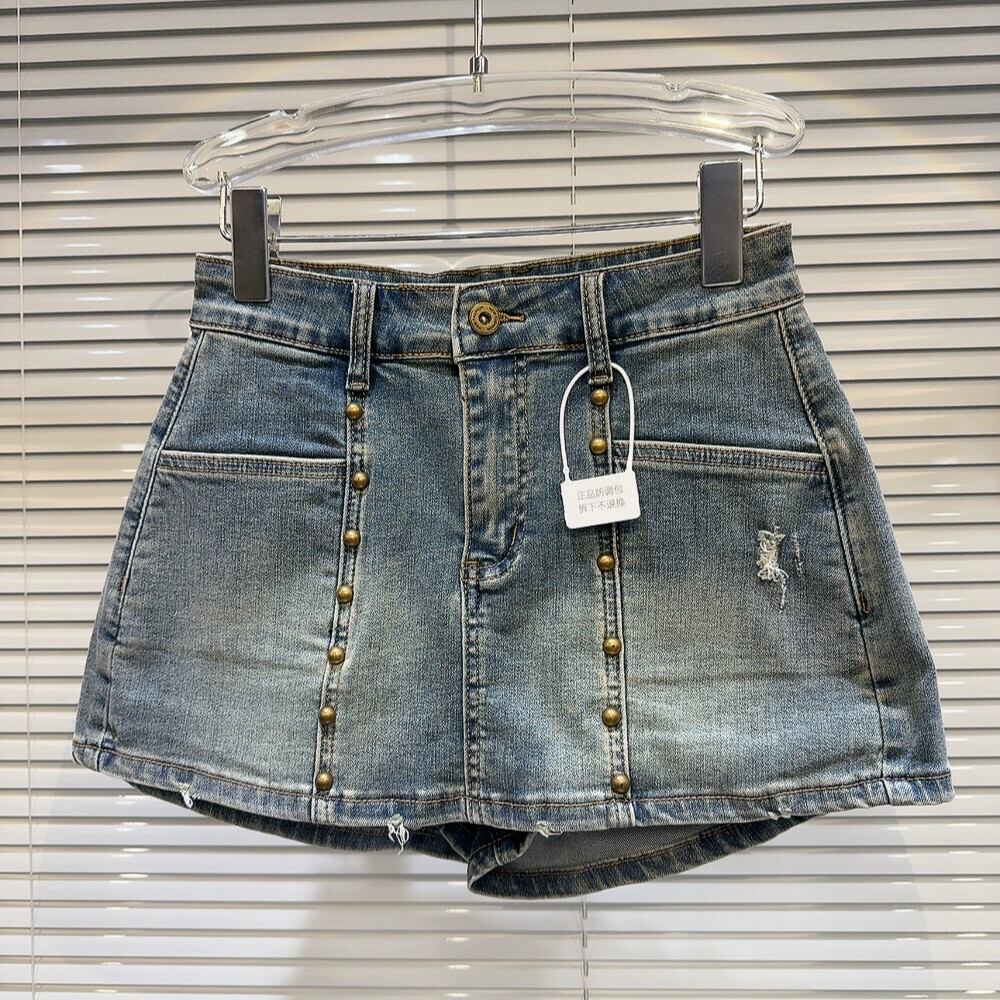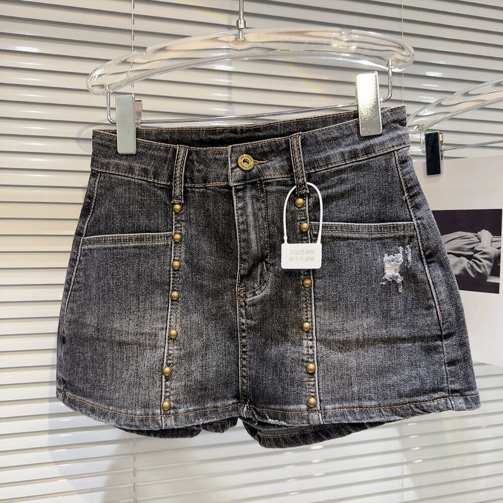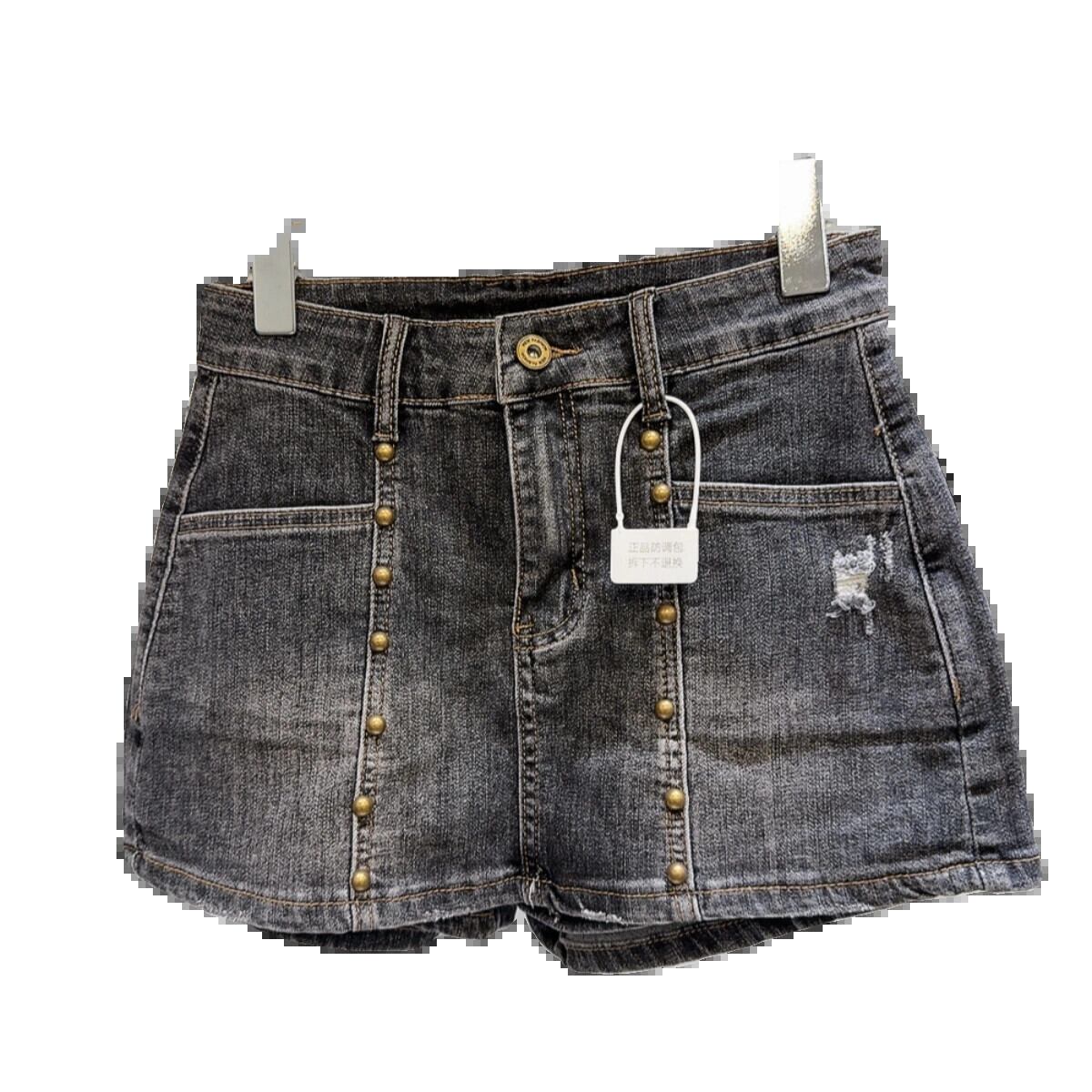 ネット有名人同スタイル2024春新作ストリートメタルリベットウォッシュグラデーション破れ穴3点デニムショートパンツ スプリング 春物 ショーツ ブルマー gyan3344749848054 | vestitialla