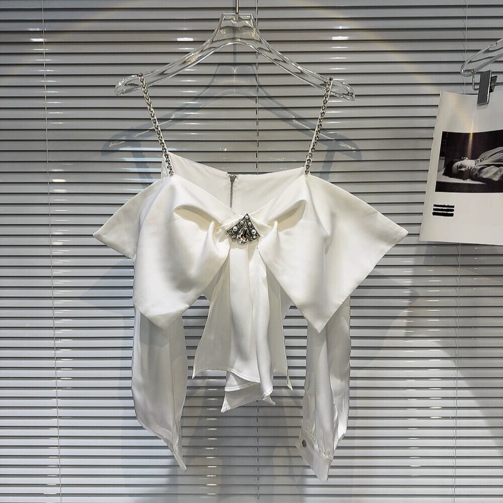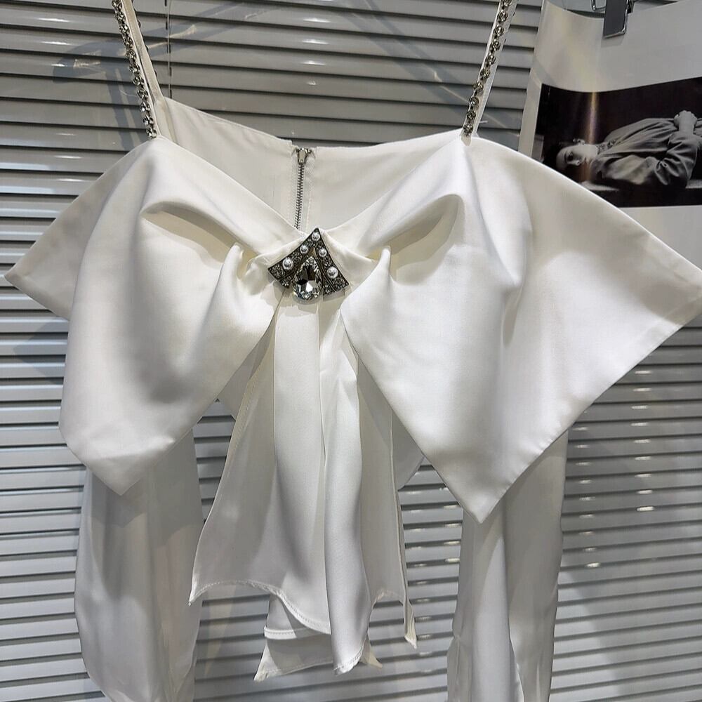 インターネット有名人同じスタイル 2024 春の新スタイル小さな香りのスタイル宝石大きな蝶の気質セレブダイヤモンドサスペンダーシャツシャツ女性 スプリング 春物 gyan3369241914021 | vestitialla