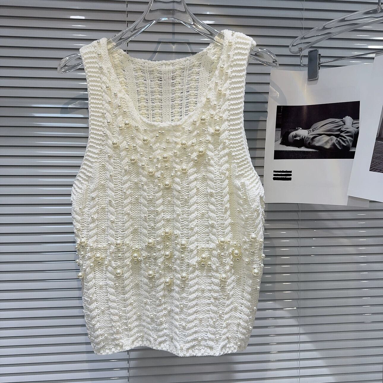 インターネット有名人同じスタイル 2024 夏の新スタイル Xiaoxiangfeng 重工業粒子パール装飾スリムフィットニットキャミソール女性 サマー 夏物 真珠 gyan3373915285817 | vestitialla
