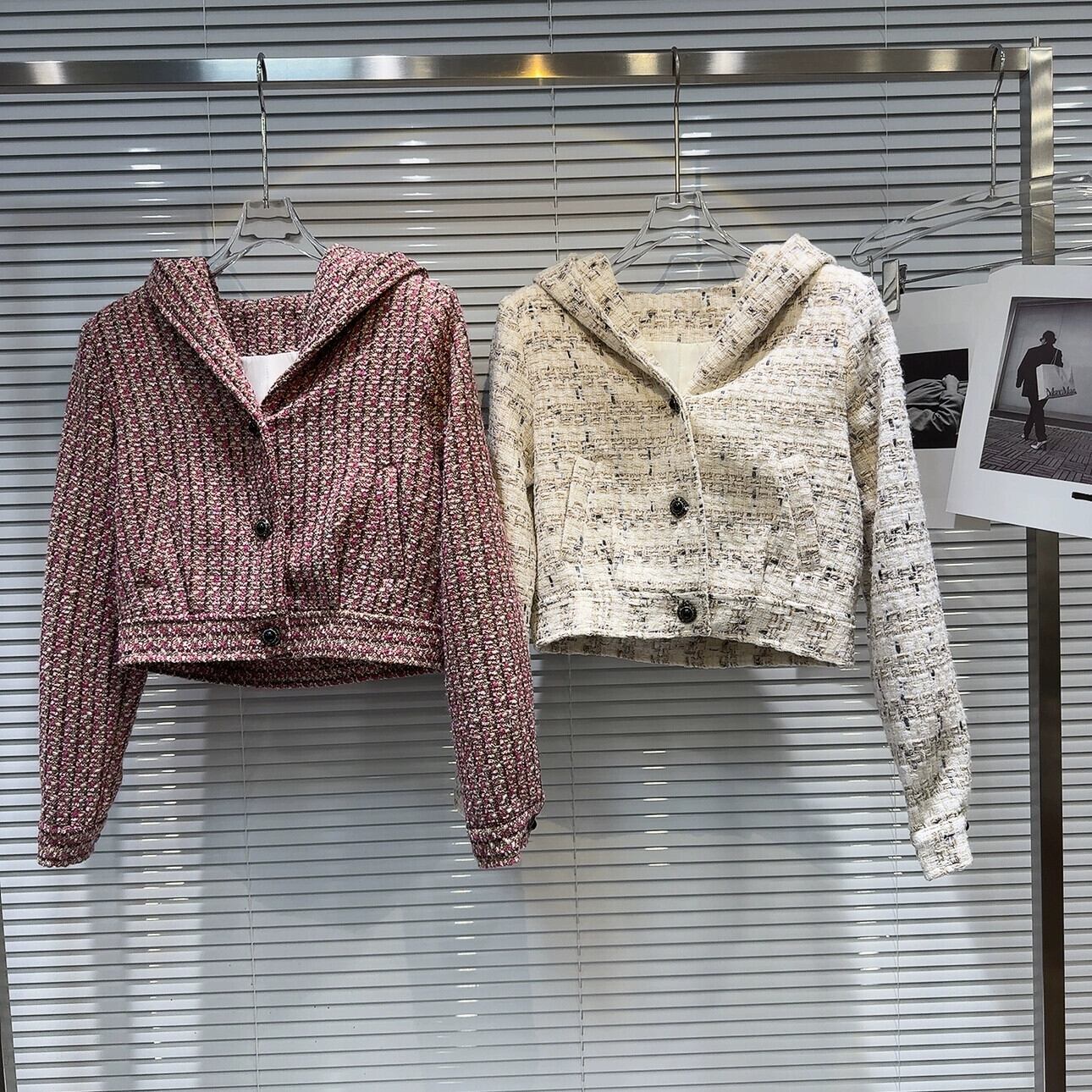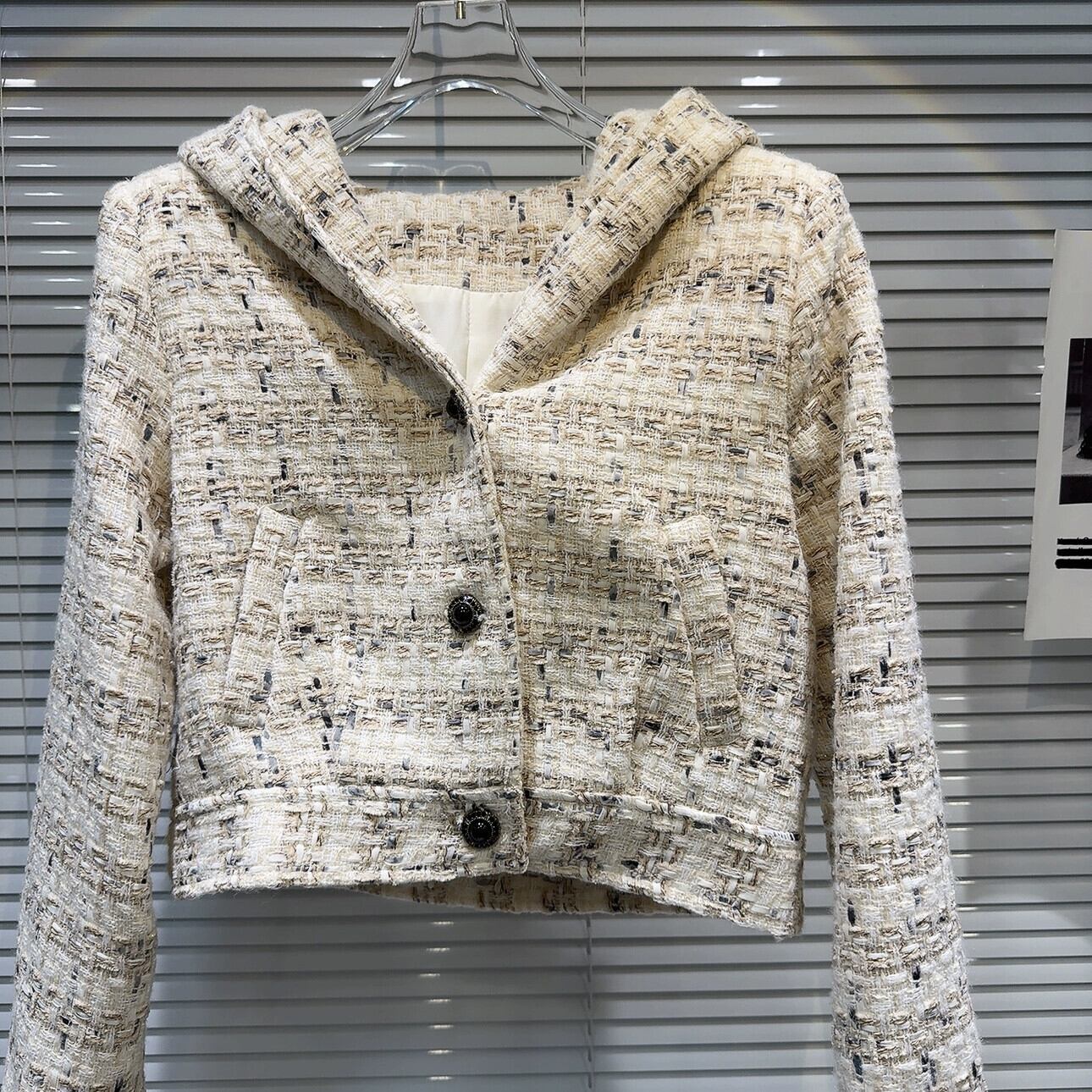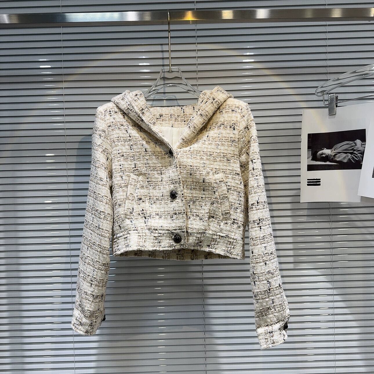 インターネット有名人の同じスタイル2024春の新しい小さなフレグランススタイルの高精細メタルバックル明るいシルクツイードフード付きショートジャケットトップ スプリング 春物 gyan3339126156684 | vestitialla
