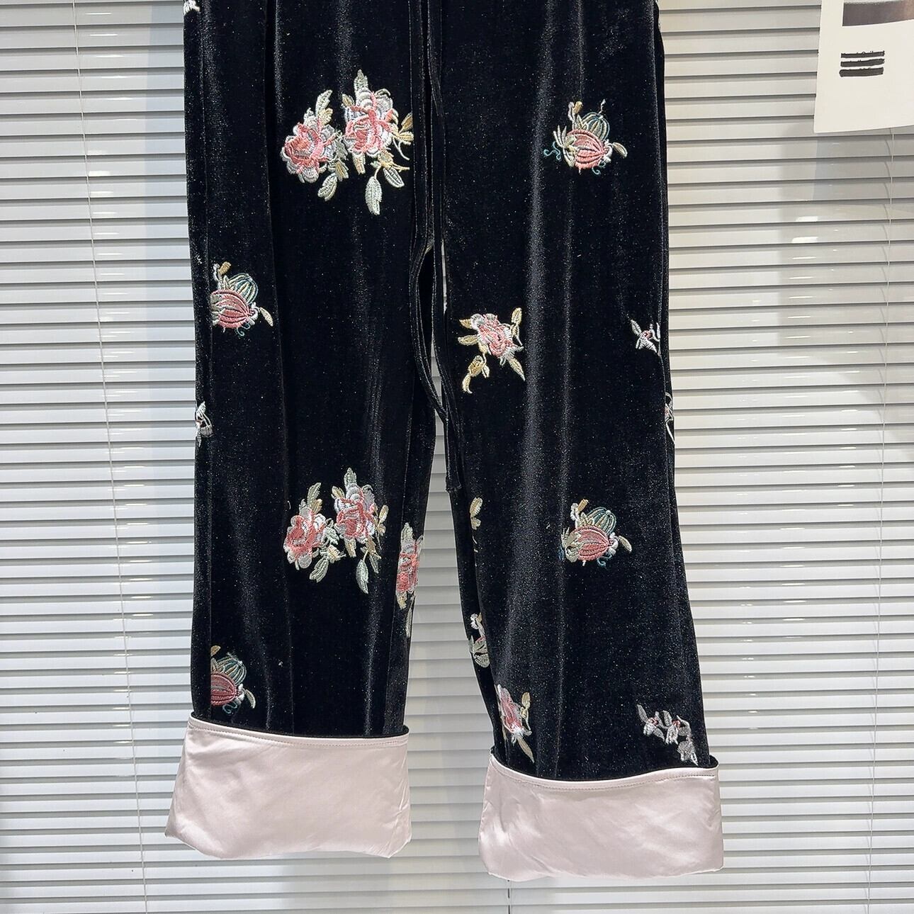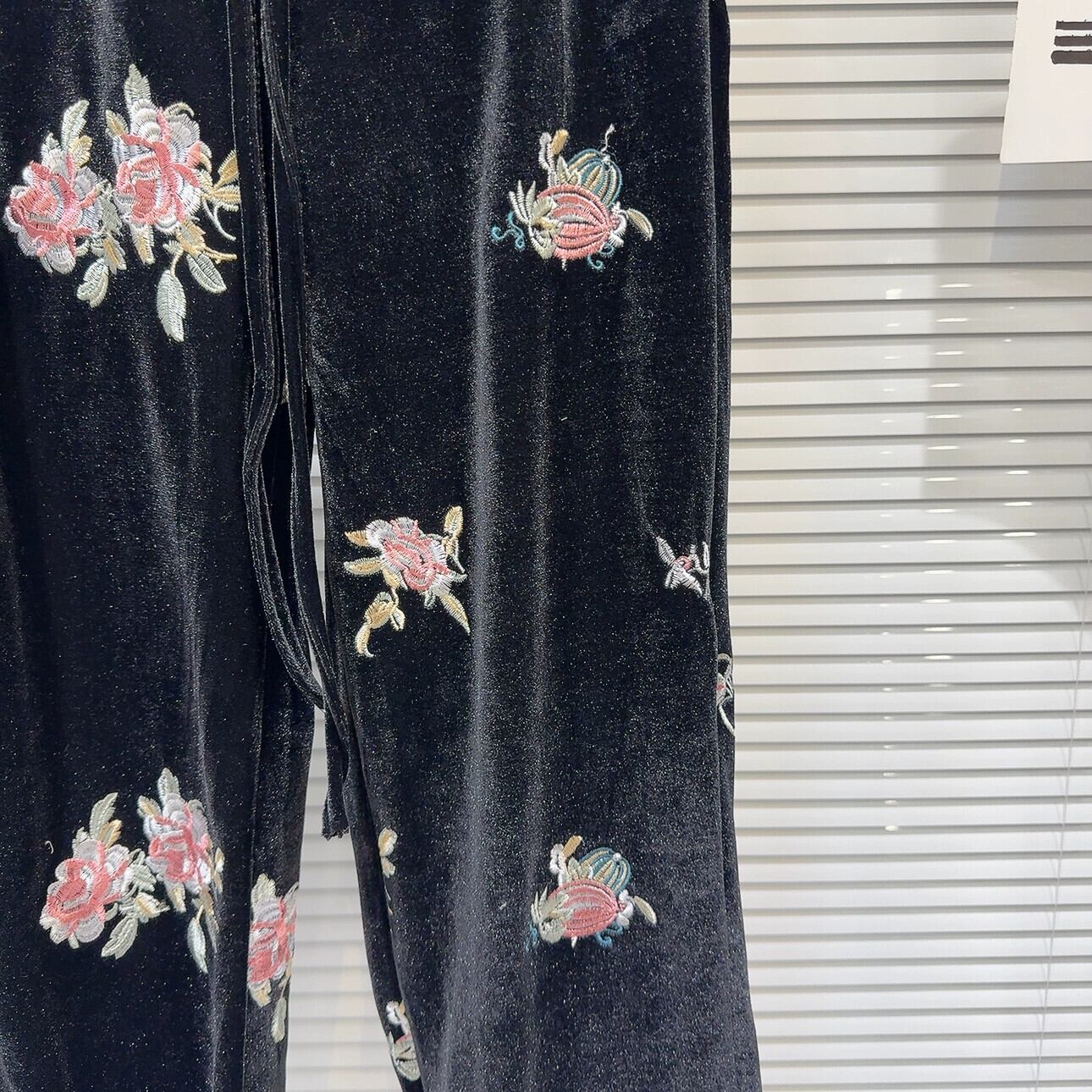 インターネットセレブと同じスタイル 2024 春の新レトロ国民風花刺繍絵カフスパンツベルベットストレートカジュアルパンツ スプリング 春物 フラワーデザイン gyan3366184024766 | vestitialla