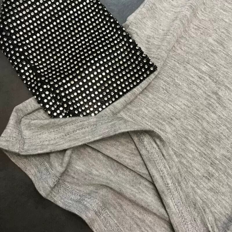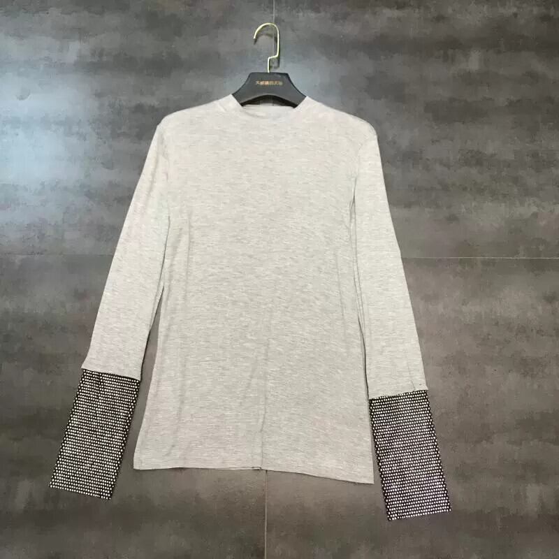 インターネット有名人同様の2024春の新スタイルのラインストーン光沢のあるスプライシングスリーブラウンドネック弾性スリム長袖ボトムシャツ小さなシャツ ロング エラスティック 伸縮 スプリング 春物 Oネック gyan3389246064002 | vestitialla