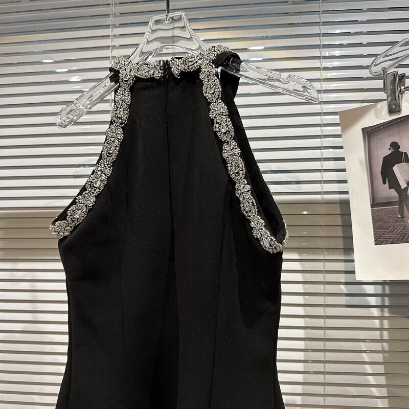 インターネットセレブと同じスタイルの2024春の新作ダークウォータードロップスパンコールダイヤモンドホルターネックエレガントな女性のウエストスリムドレス スプリング 春物 gyan3335776103174 | vestitialla