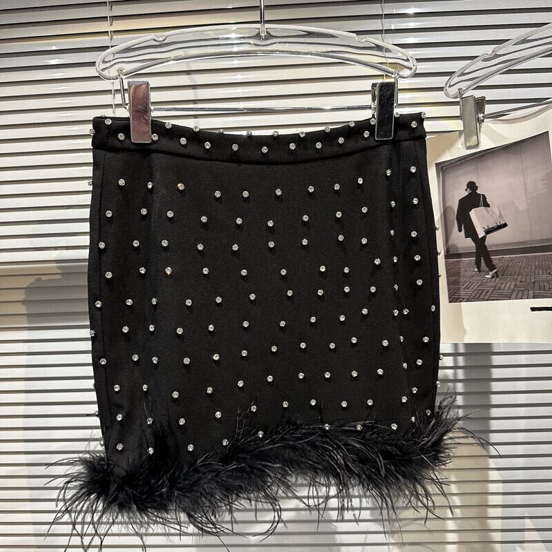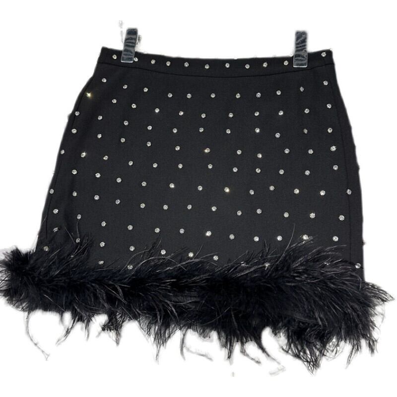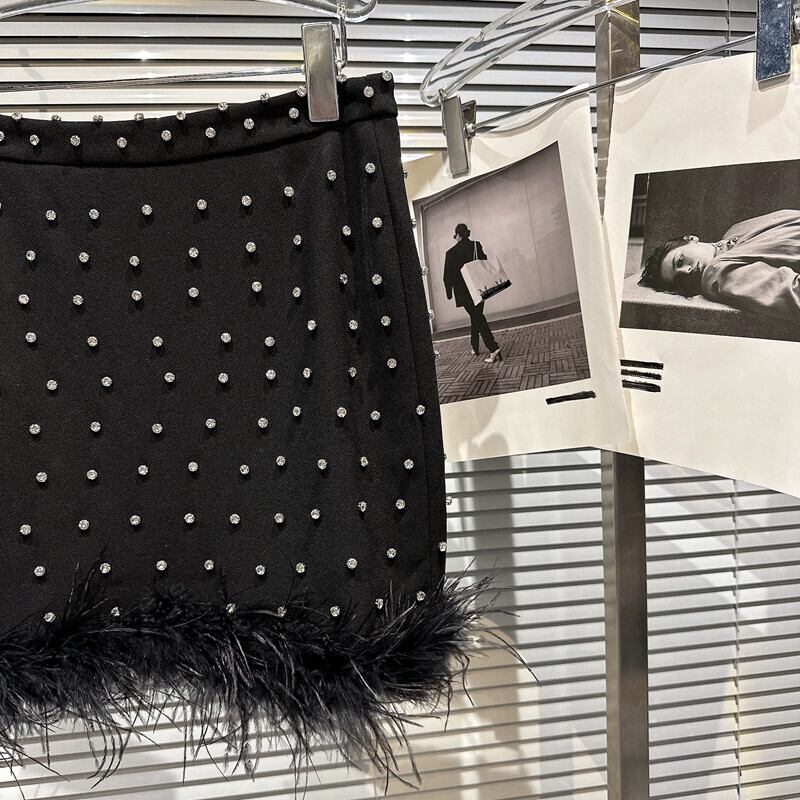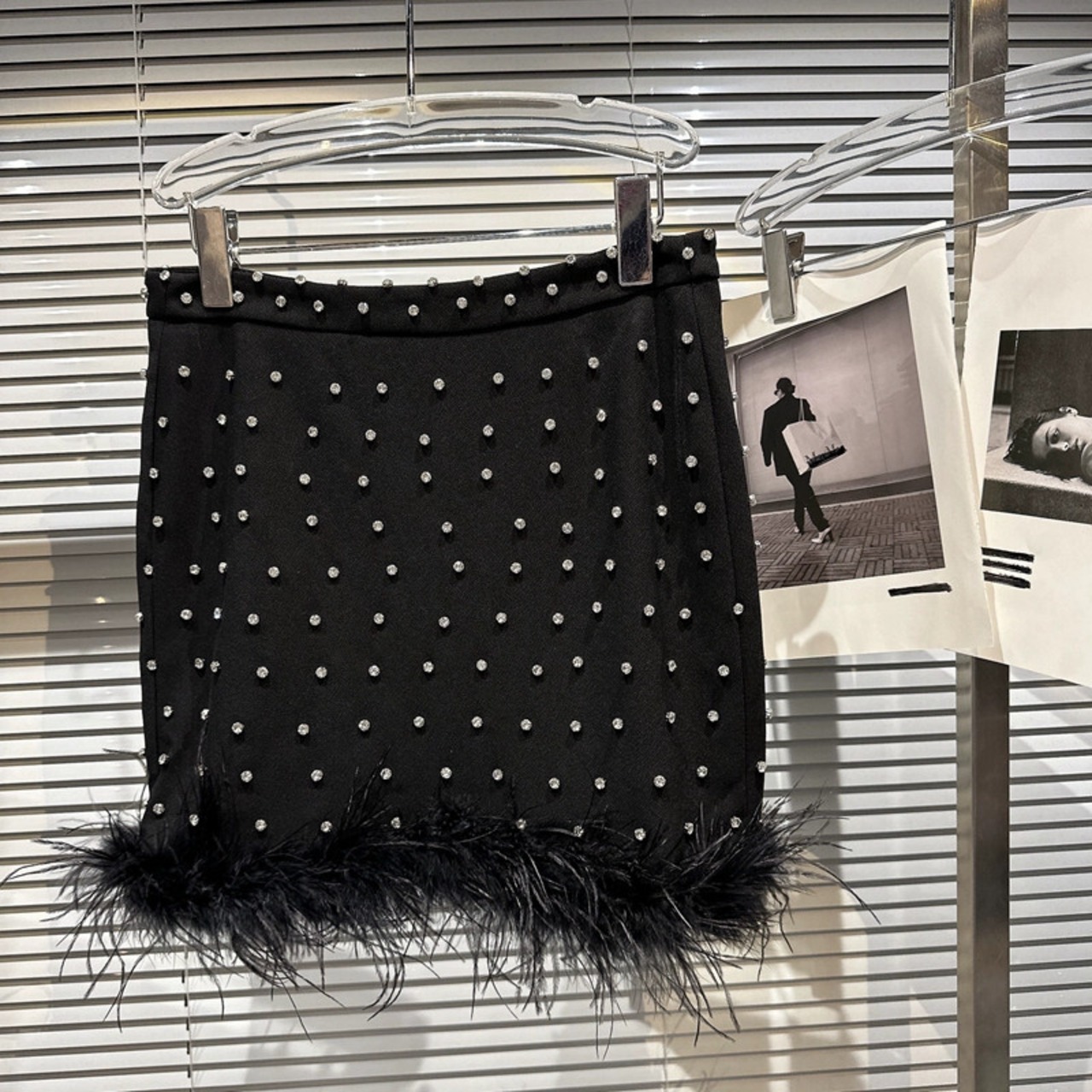 インターネットセレブ同じスタイル 2024 春の新スタイル小さな香りスタイルセレブファーエッジラインストーンビーズヒップスカートショートスカート女性 スプリング 春物 gyan3375939942211 | vestitialla
